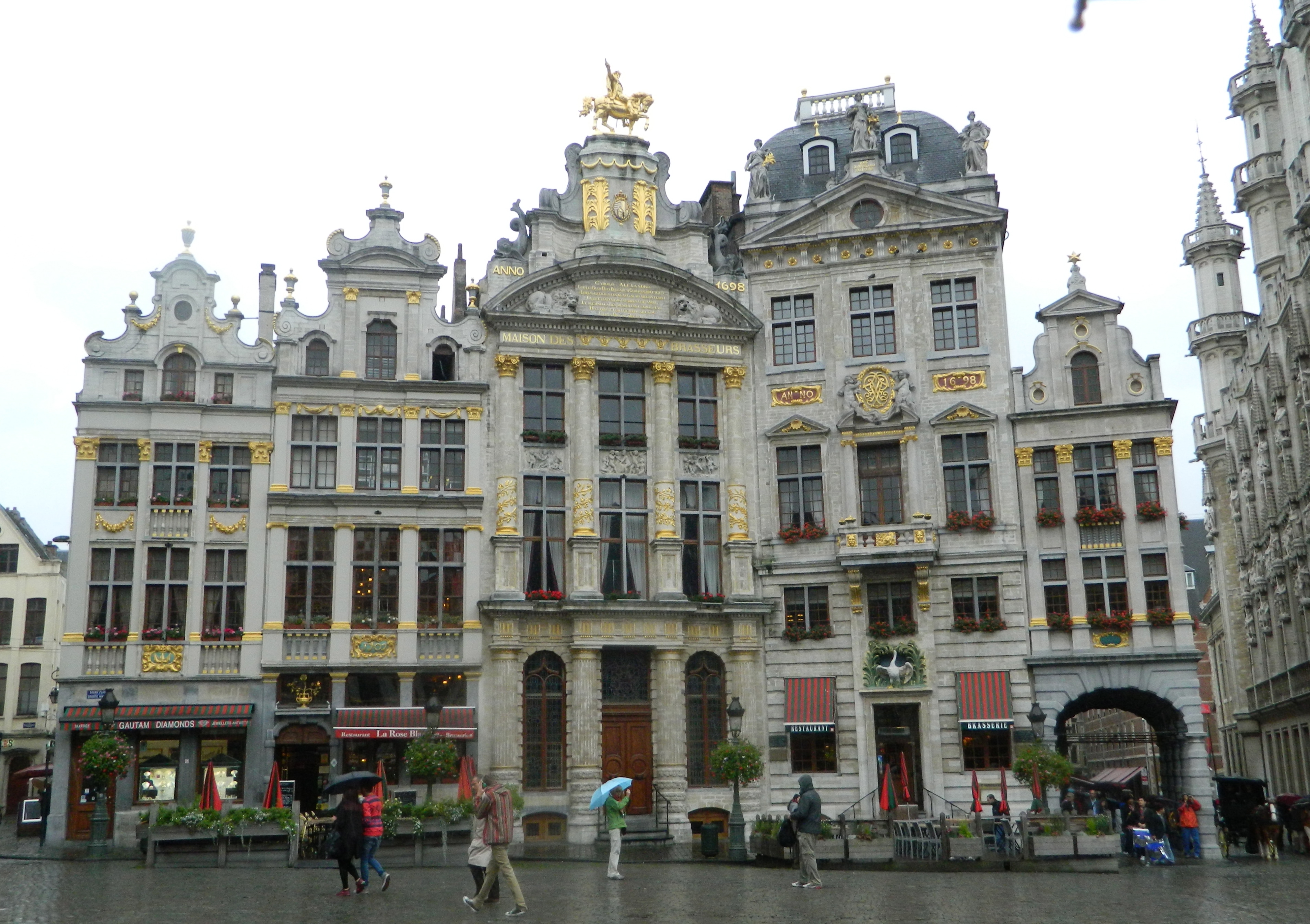 I was in Belgium last week for business and had a few hours one afternoon to go for a walk in the beautiful city of Brussels. I was in desperate need of coffee after the overnight flight and the concierge of my hotel directed me to visit a series of galleries for coffee and sightseeing. From there it was a one block walk to the Grand Place, the biggest tourist attraction in Brussels. It is an amazingly beautiful square with the most intricate architecture and detail. Despite the rain falling, it was stunning. Stunning, and inspirational for quilting. I’m thinking about making a strip pieced quilt with different fabrics at different heights to try to mimic the top of this side of the square. I’d like to somehow make the quilt grey monochromatic, but use pops of color to represent the details seen in the photo. Now I just need to find time to do it.