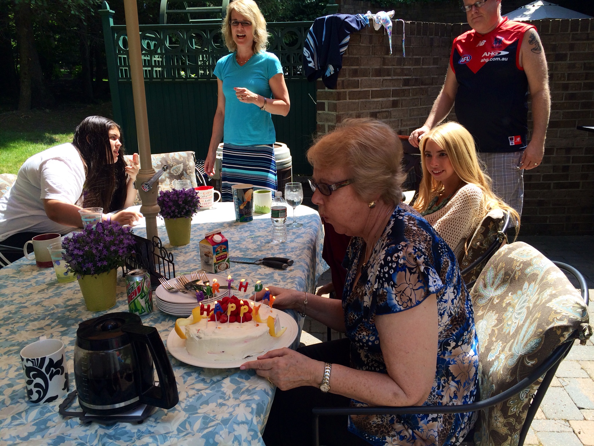 Dessert was even trickier as we had a lot to celebrate. Sophia got a homemade chocolate mousse cake with a chocolate sponge base that you can’t see. Scott (the adorable nephew) moved up from middle to high school so he got chocolate ganache filled cupcakes. And the next day was my mother-in-law’s birthday. For her we made a homemade fresh lemon raspberry cake. It was a really fun day – and next up will be Maddie’s birthday this week!