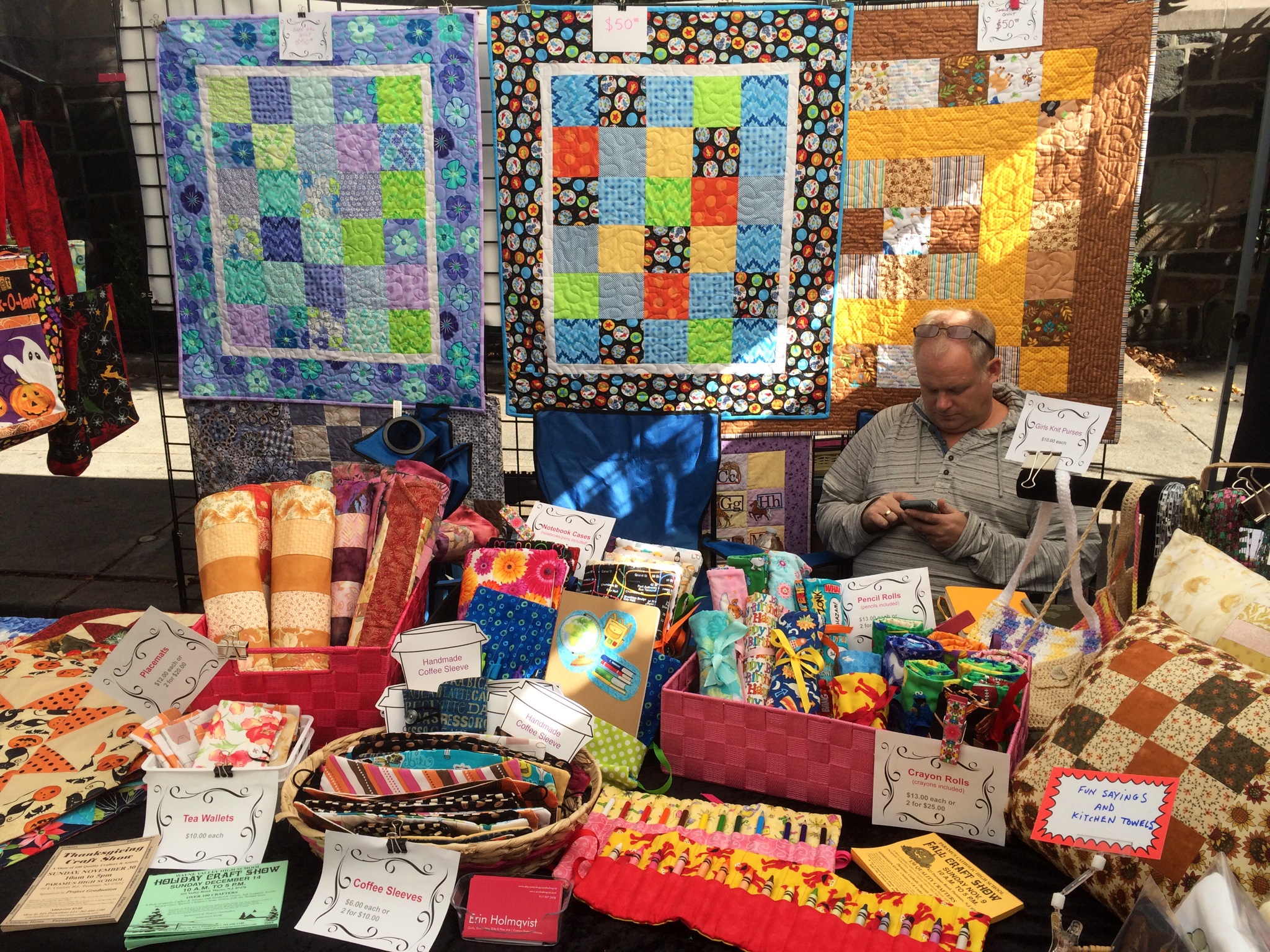 We reorganized our booth, yet again, to try to keep embroidery together, baby quilts together, and home decor somewhere near each other. I am not sure how well it worked out, but we know where everything is so that is good enough for me.