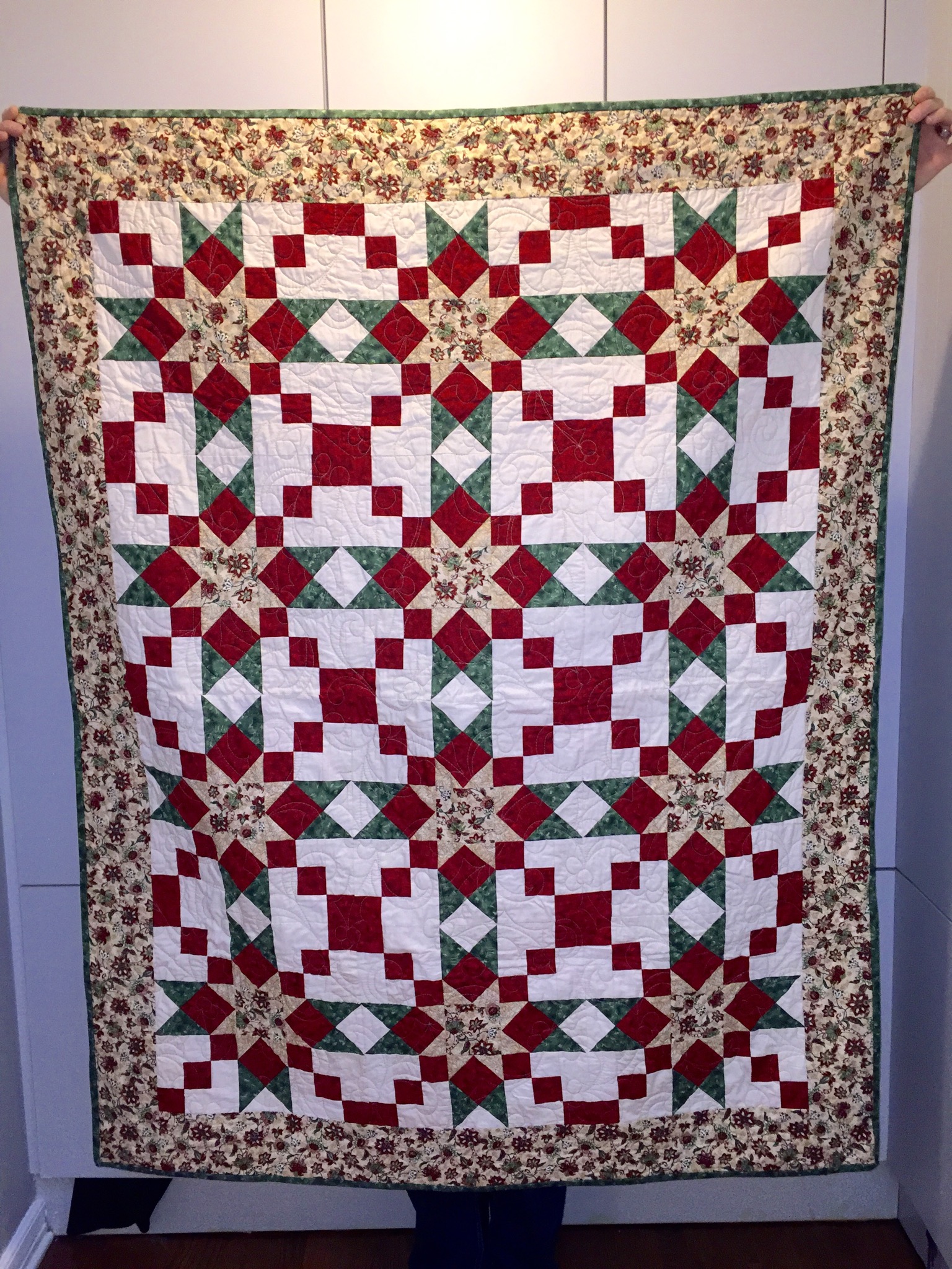 I love how this block (which I have seen called many different names) forms a secondary pattern and chain through the quilt. This was my first significant quilt sold so that is very exciting and motivating.