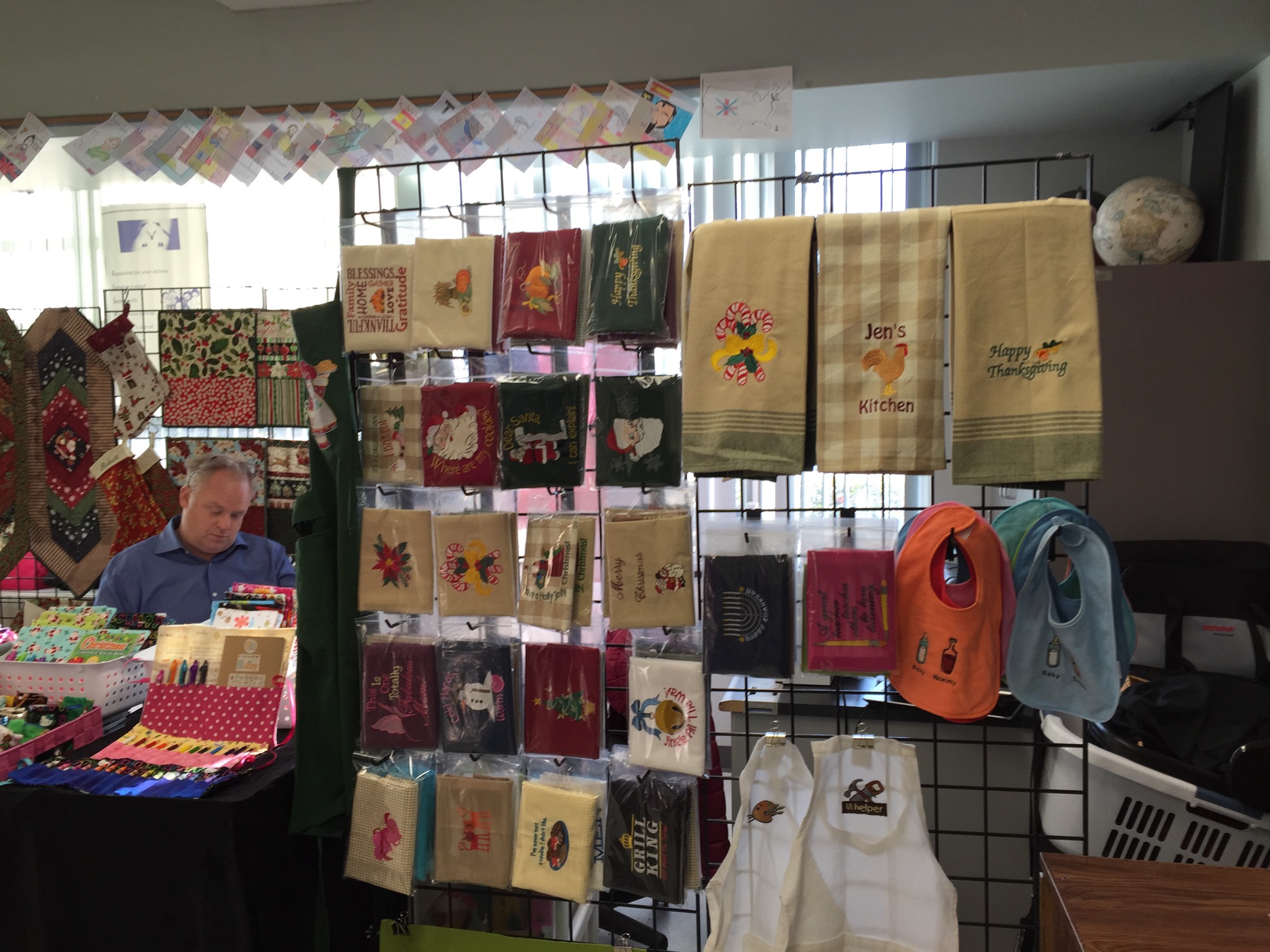 With those guiding principles in mind we reconfigured our space and created a wall of all embroidery. It worked out great. It was out biggest day for embroidery yet.