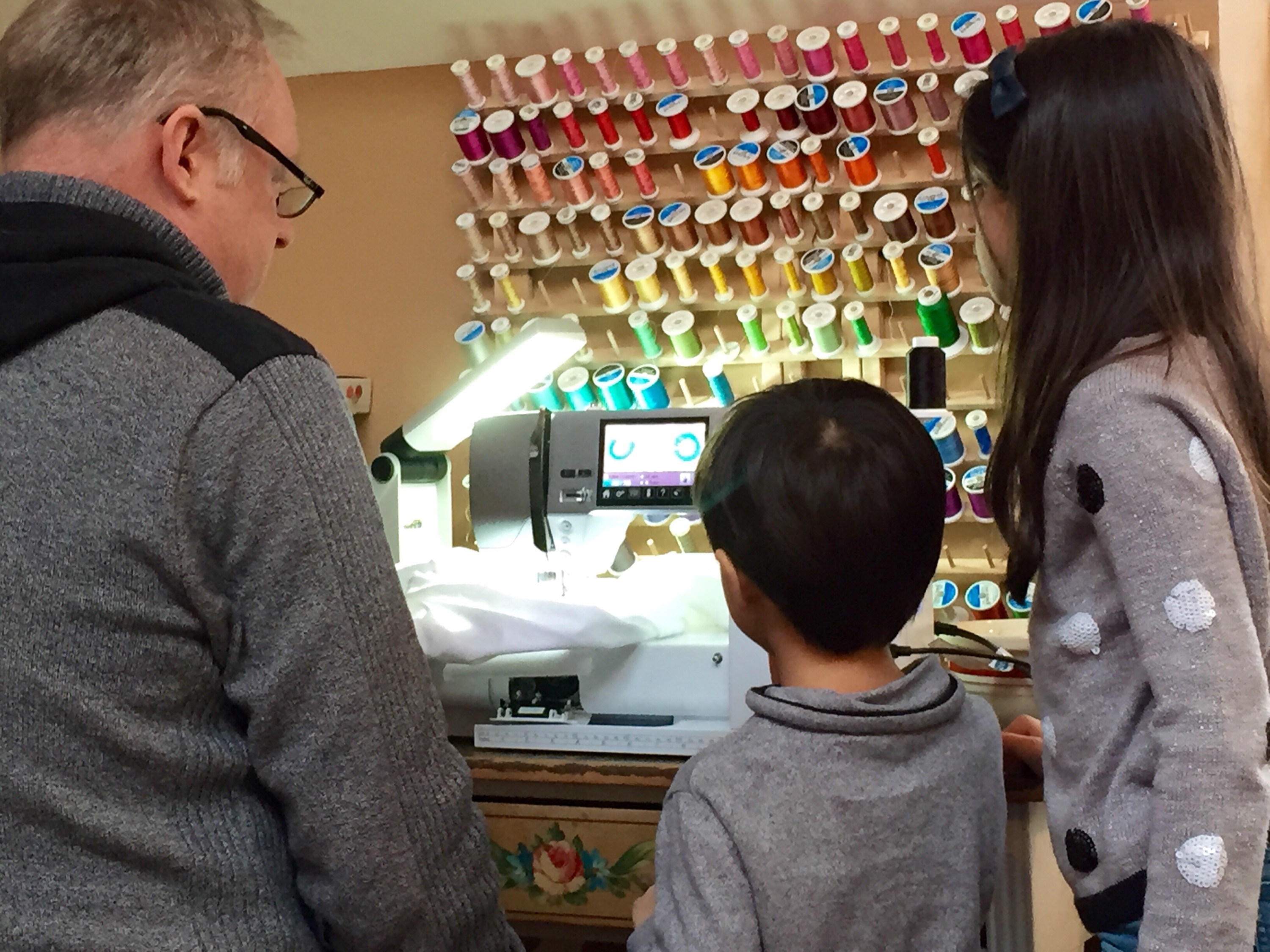 My good friend Shane came to visit yesterday with his adorable kids, Sophia and Gavin. We decided to hang out in the sewing room to multitask – catch up on things while working on spring orders.