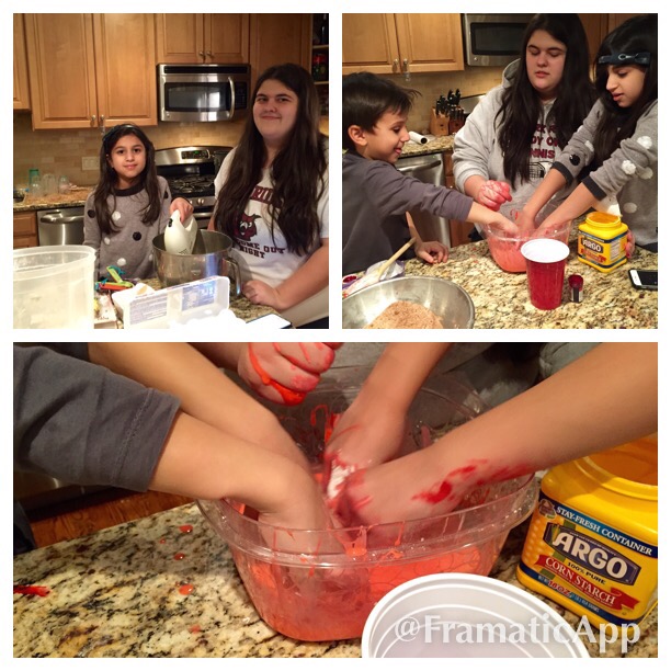 After seeing for a bit, Rob, Shane and I went to dinner, leaving Maddie in charge of the kids. They decided to bake. And make goo.