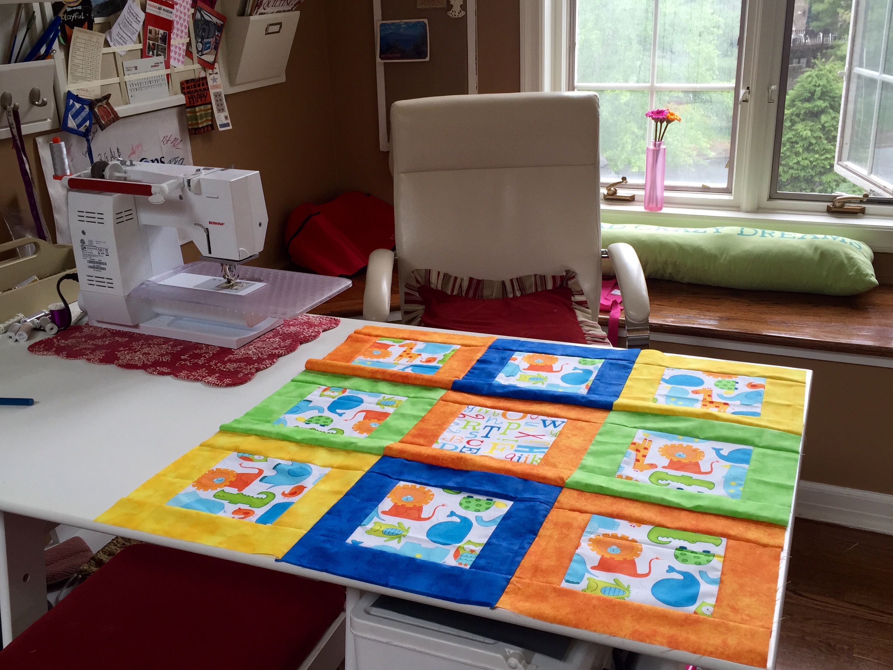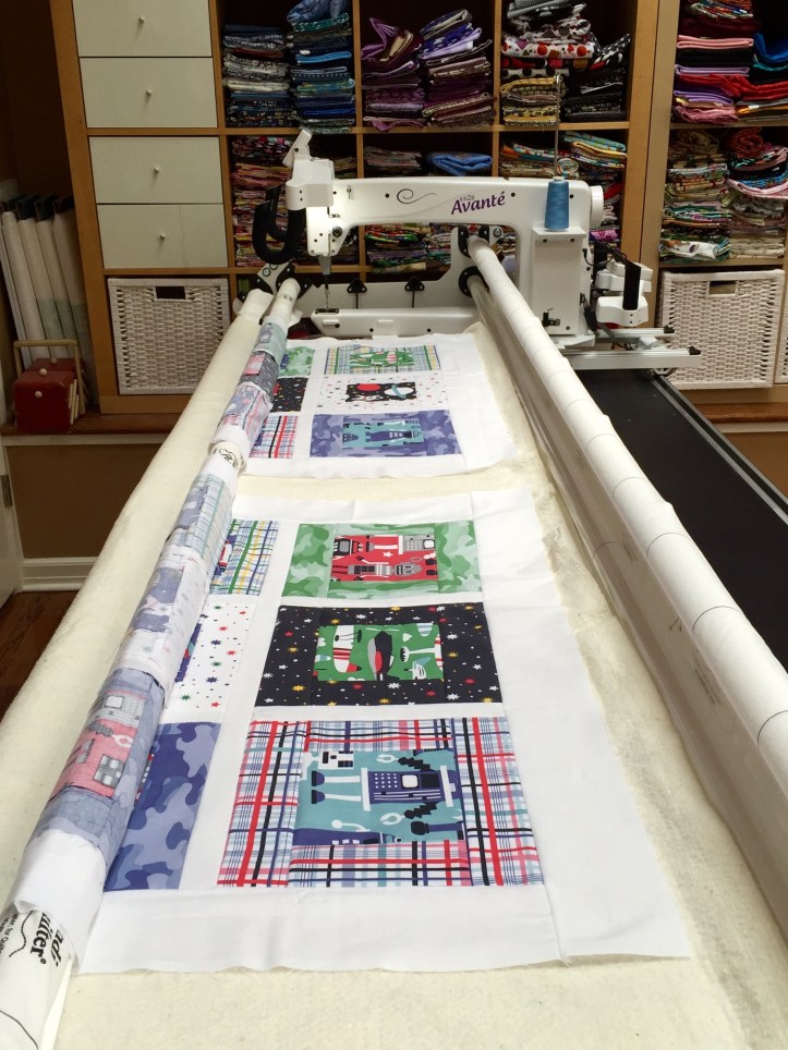 In between working on the longarm machine, I am working on additional bright and cheery baby quilts. I am doing two identical tops, but wish I had used a lighter blue so they could be more unisex-ish.