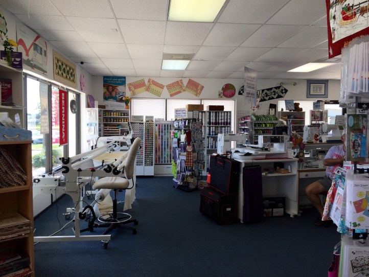 We are in Ocala visiting my Mom and Bill for the holiday weekend. Any trip to Ocala includes a visit to Tomorrow’s Treasures , a really nice shop near my Mom’s house. My last few visits I have ended up striking out due to holiday schedules so I was quite excited when I called today and they were open! For one thing, they have great taste in machines. They carry Bernina sewing and embroidery machines and Handi-quilter long arm machines.