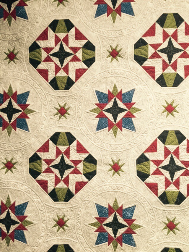 They used to do long arm quilting, but I believe now that the long arm is reserved for their quilts for sale and for traveling exhibits. The quilting on this one is phenomenal. Now that I do long arm quilting I have a new appreciation for the effort this requires.