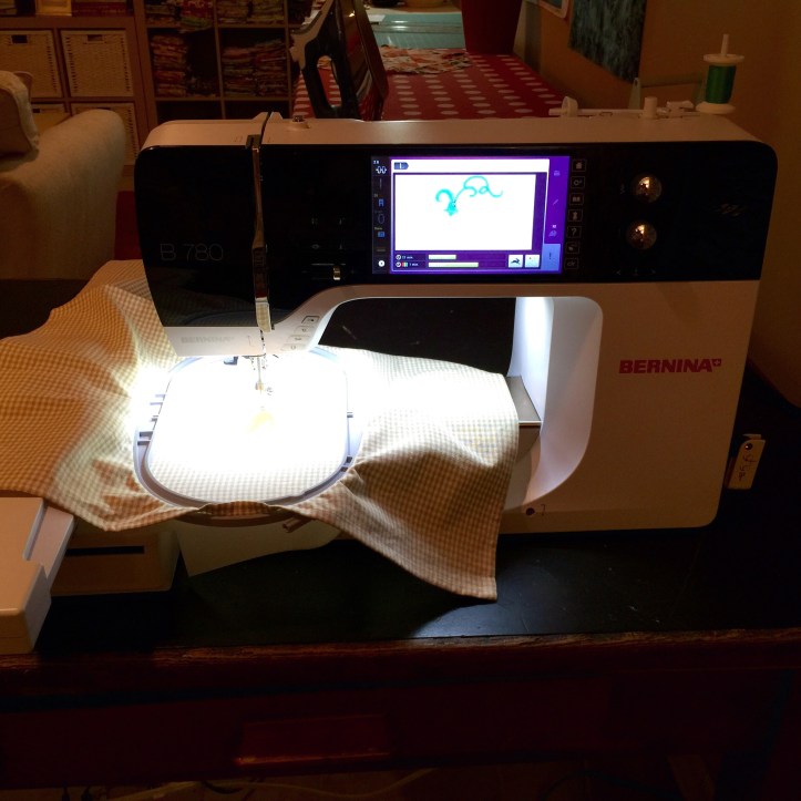 When I first decided to add machine embroidery to my sewing repertoire a year and a half ago, I really wanted one of the larger machines with a larger sewing bed. But I just couldn’t reconcile the price tag so I got a middle-of-the-road Bernina. So imagine my surprise when a local shop was closing and offered bargain basement prices on new top-of-the-line Bernina machines!!!