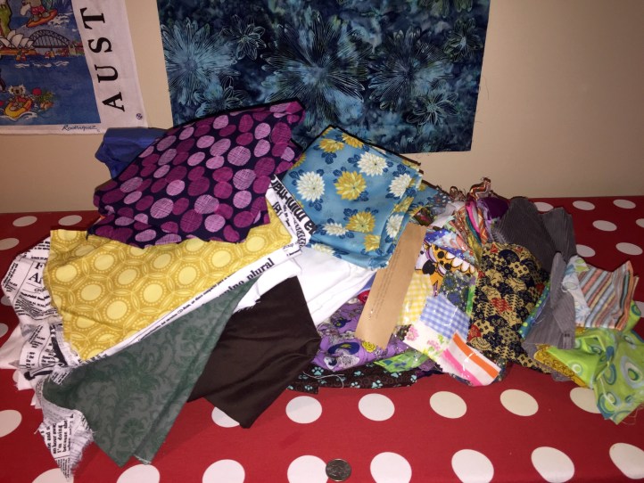 When Joy says, “let’s have drinks, and oh, I have a few fabric scraps from my sister for you,” what she really means is, “I have a huge bag of scraps and some fabric too and you damn well better buy me a cocktail for lugging this on the train from North Carolina for you!” Joy is one of those friends who is always amazingly fun and is selfless with her kindness and generosity to others. And this bag of scraps was no exception.