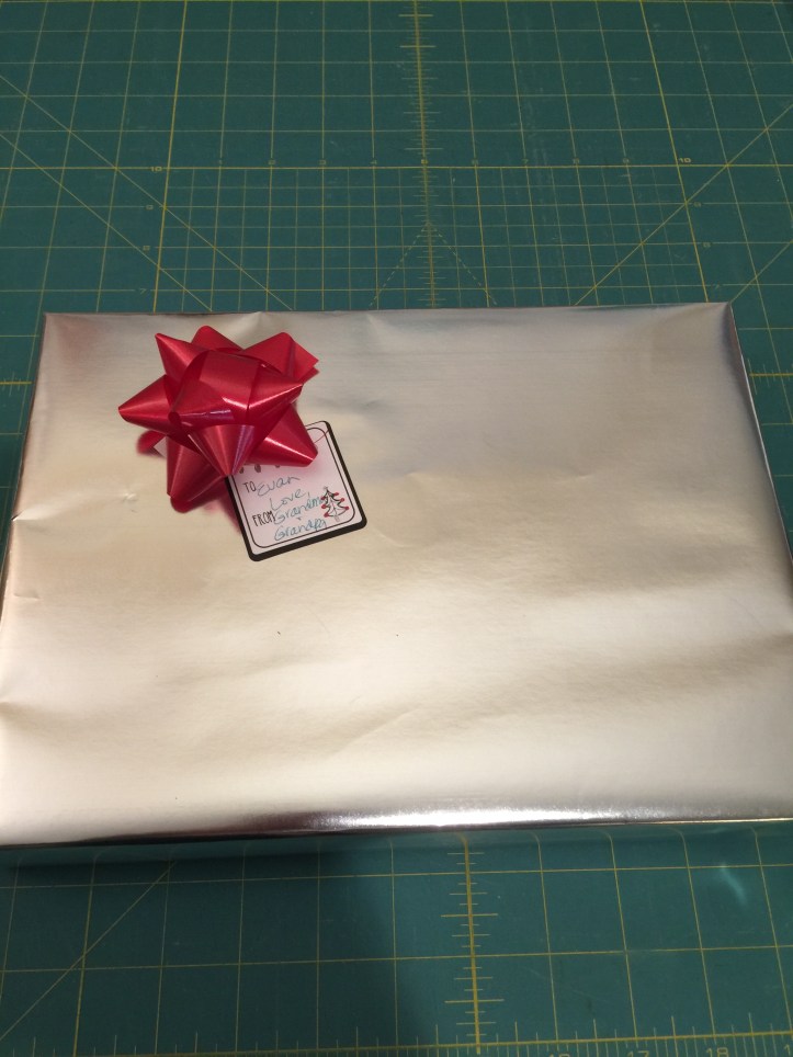 Now the present is wrapped and on the way to Baby Evan. I think next year I will make some of these as a set. Thanks Judy for the great idea!
