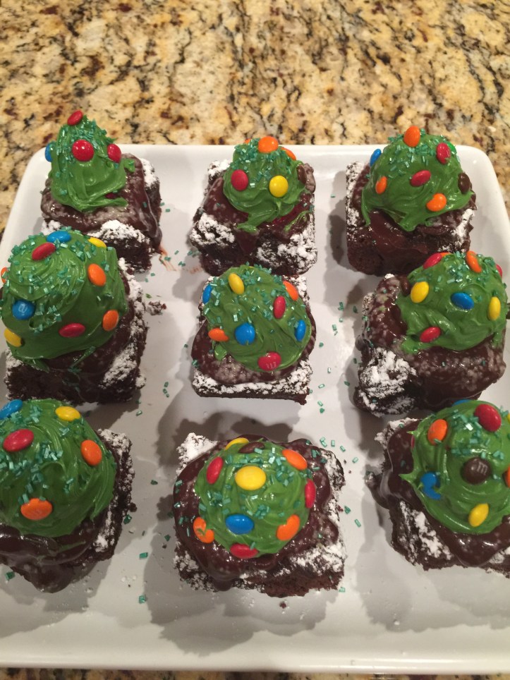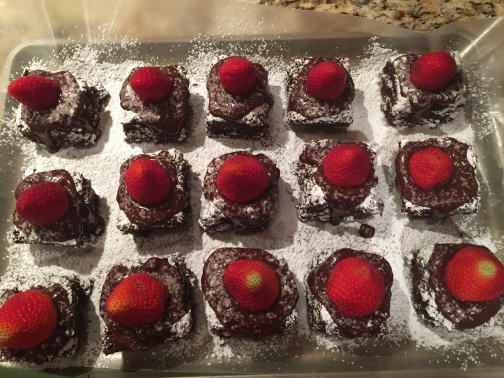 I also used the ganache on these less-than-successful Christmas trees. They are a brownie base with powdered sugar and then a strawberry.