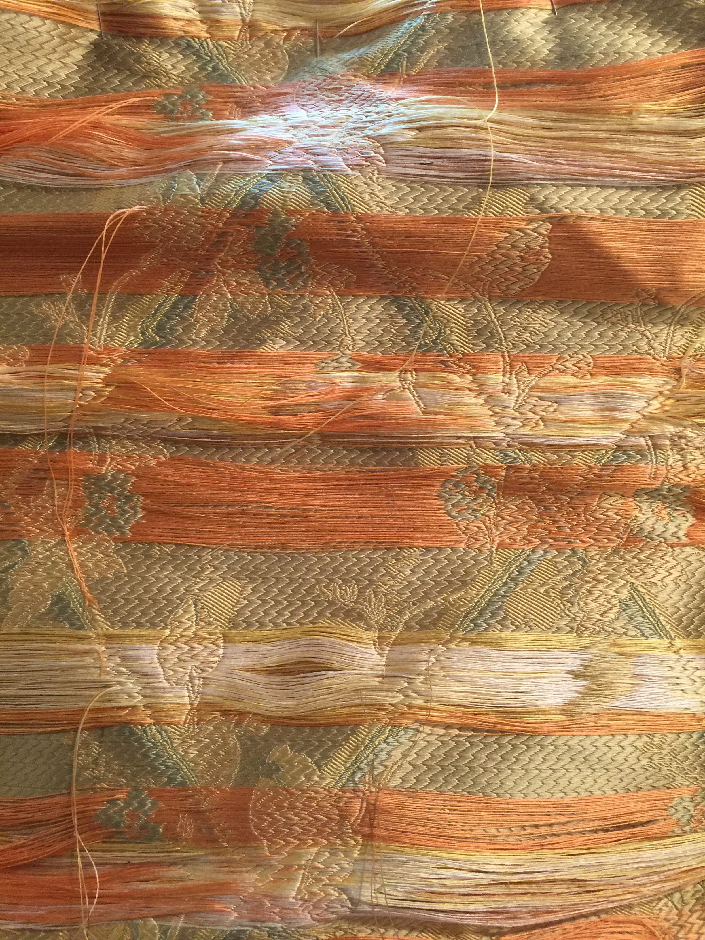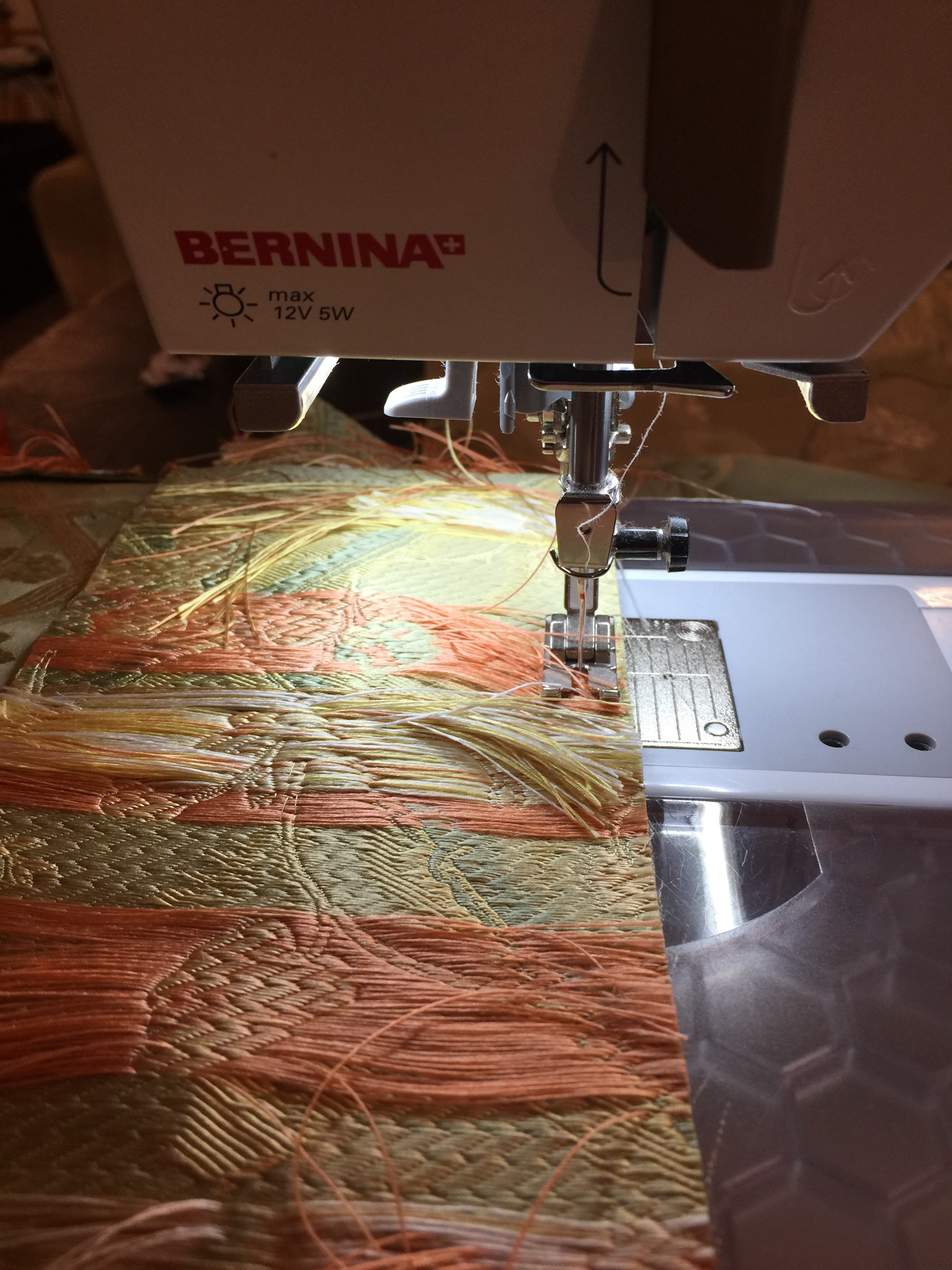 It was a beautiful Asian woven print. I honestly never worked with a fabric like this despite 30 years of sewing. Cutting it was a nightmare and sewing it wasn’t much better.