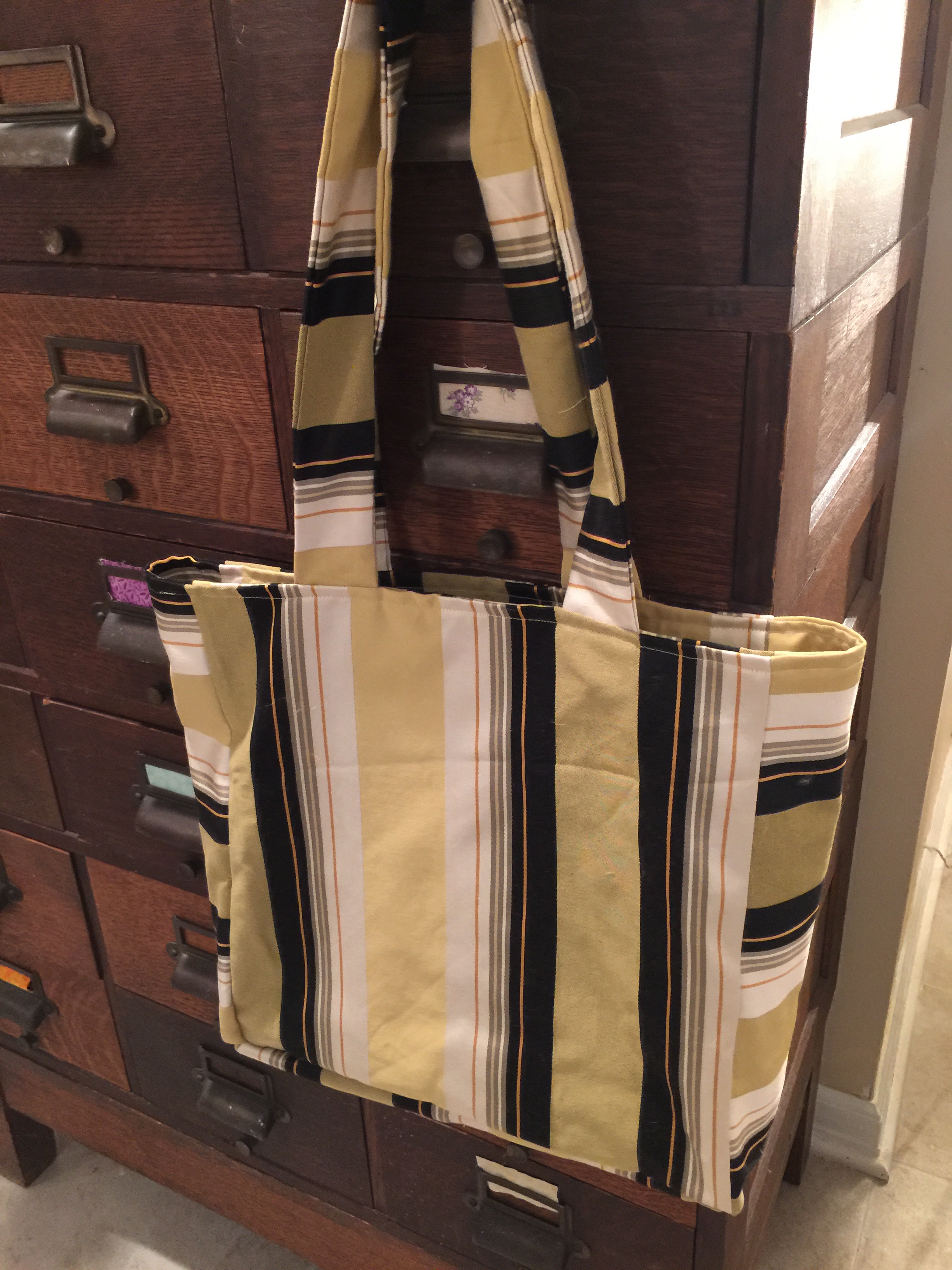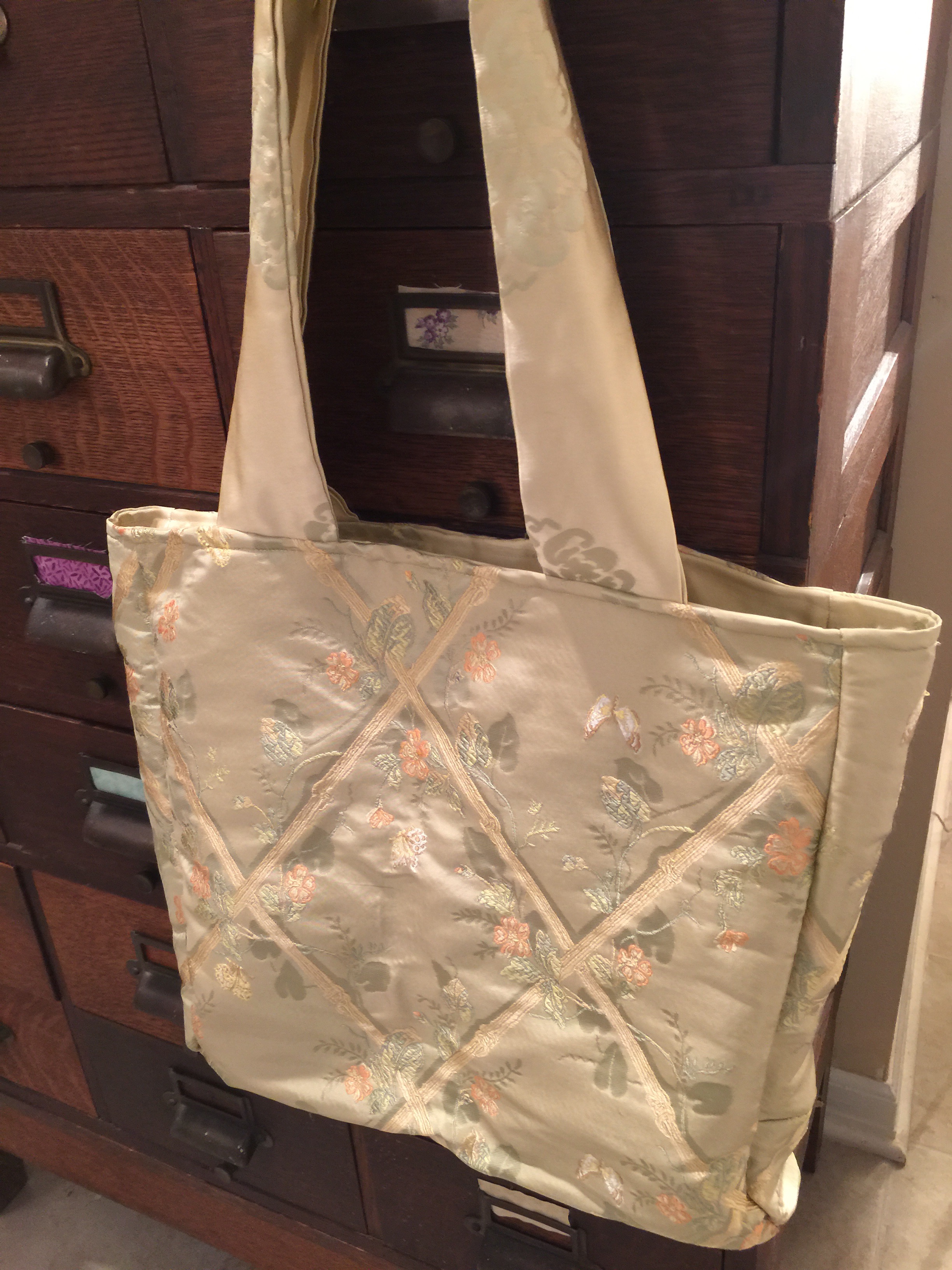 She also sent another upholstery fabric that made a nice tote. I often see home dec fabrics in the remnants bin and think I will take a closer look next time as I really like this tote.