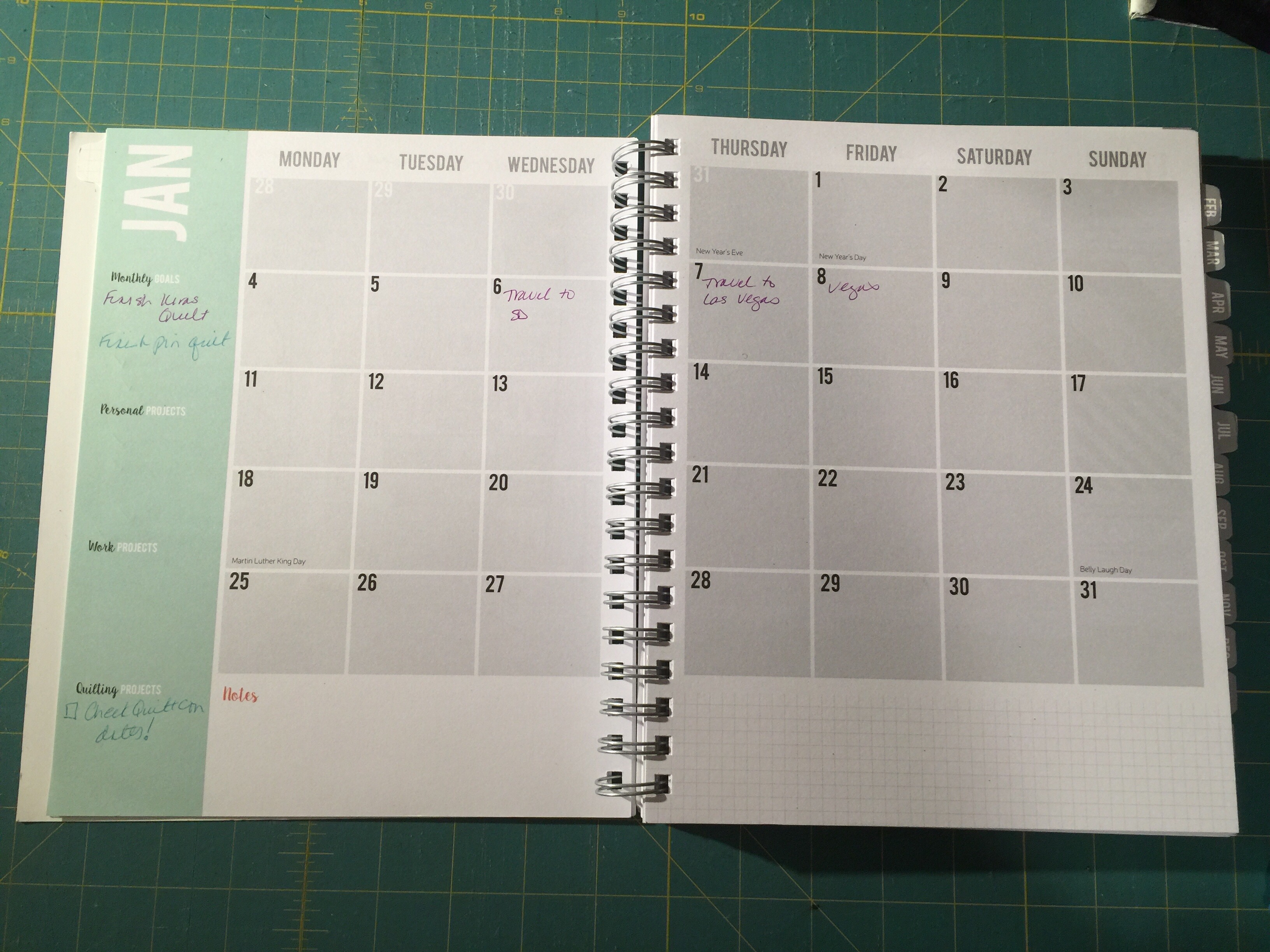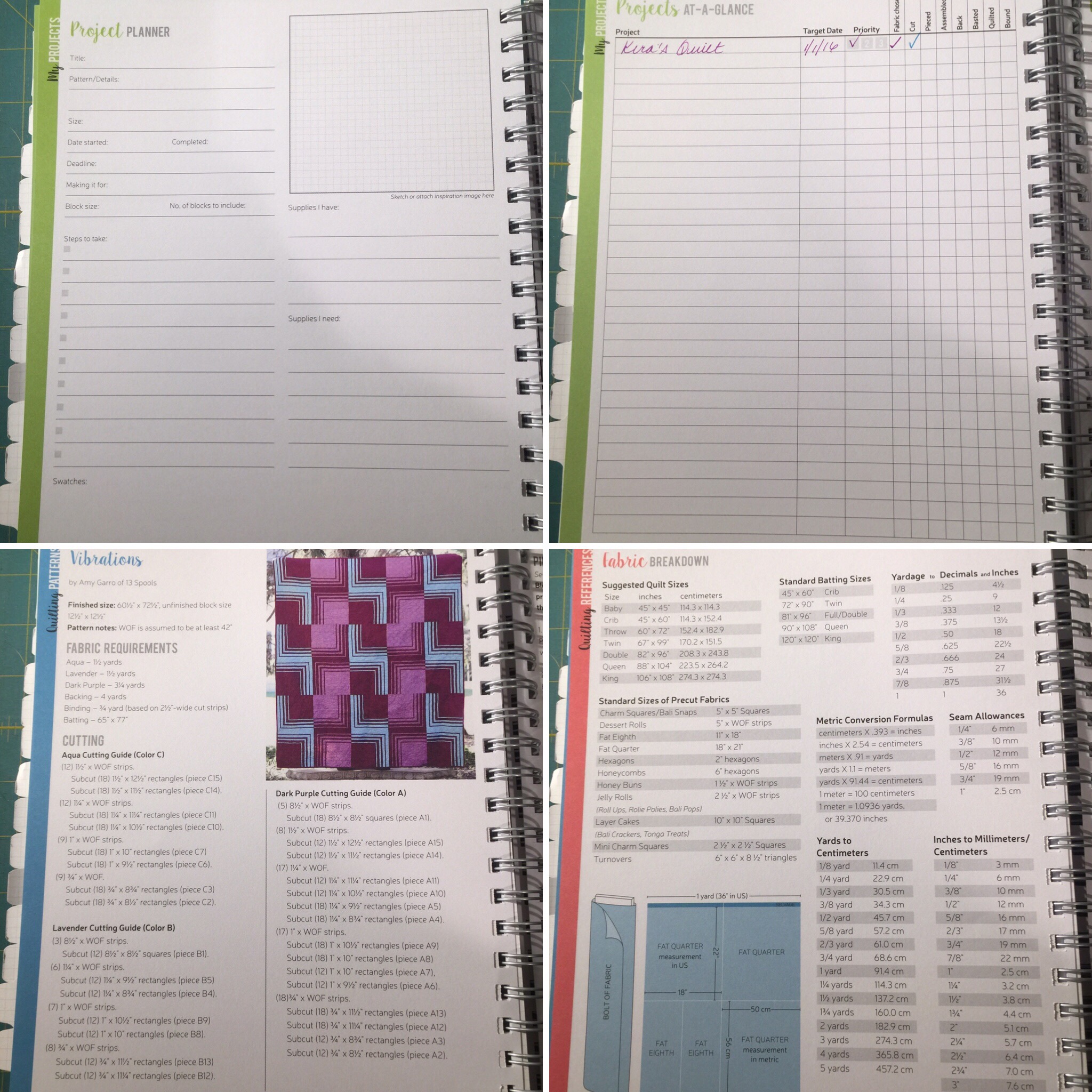 My quilting project plans are usually all over the place – in a big notebook, in my work notebook, and on random sheets of paper. This year I plan to keep better track of both craft show and personal projects with the Quilters Planner that my mom got me for my birthday. Thanks mom!