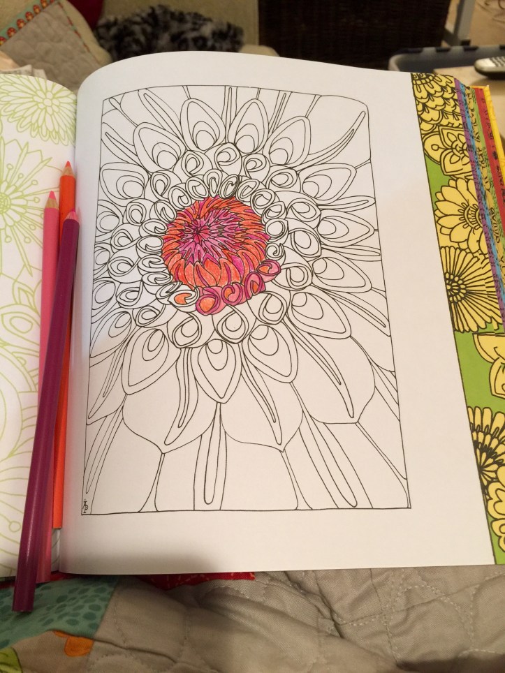 I have mentioned how I am very committed to finding 15 minutes per day to focus on channeling my inner creative self. Sometimes that is reading, or sketching, or designing, or shopping for fabric. And now, sometimes that is tapping into the adult coloring craze.