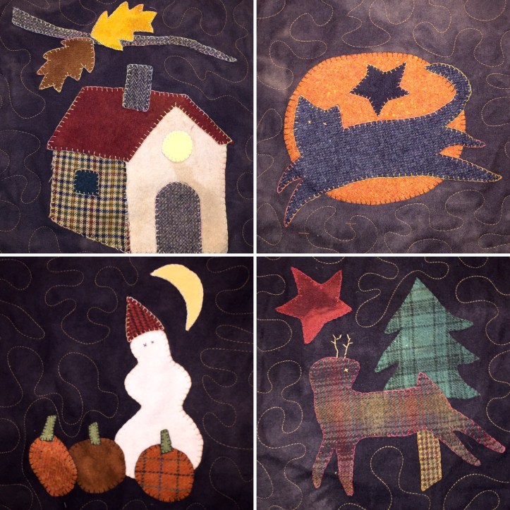 And wrapping up the year is September through December. I love the October block and think it would be adorable as a pillow. For the longest time I couldn’t understand why November had a ghost in it, but then I realized it is a snowman. Duh.