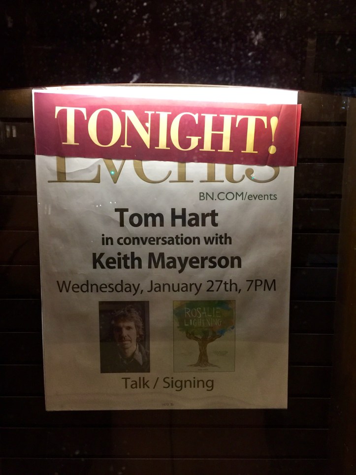 Last night was special. My old friend and former colleague Tom Hart did a reading, QA and book signing at Barnes & Noble onthenupper west side about his book Rosalie Lightning. Rob and I went with a friend from work, Charlie and his awesome ladyfriend Jamie. Allie from my office also came which was awesome.