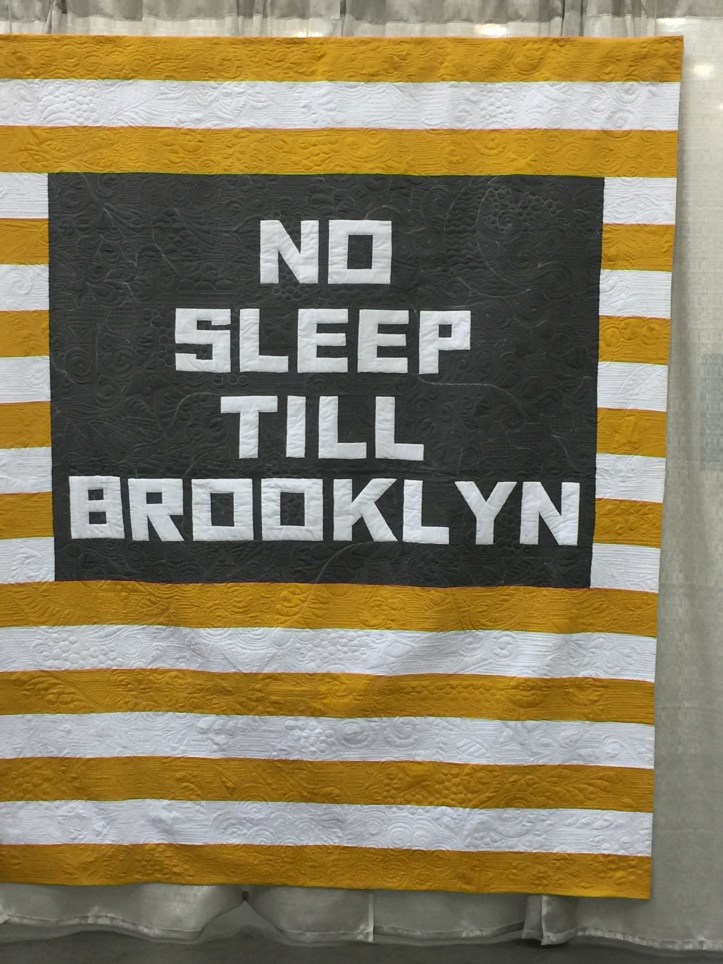 I absolutely loved the simplicity and strength of “No Sleep Till Brooklyn” by Allison Chambers (@downtownquilter_allie on Instagram). She mentioned in her write-up that she likes to reference pop culture in her quilts.