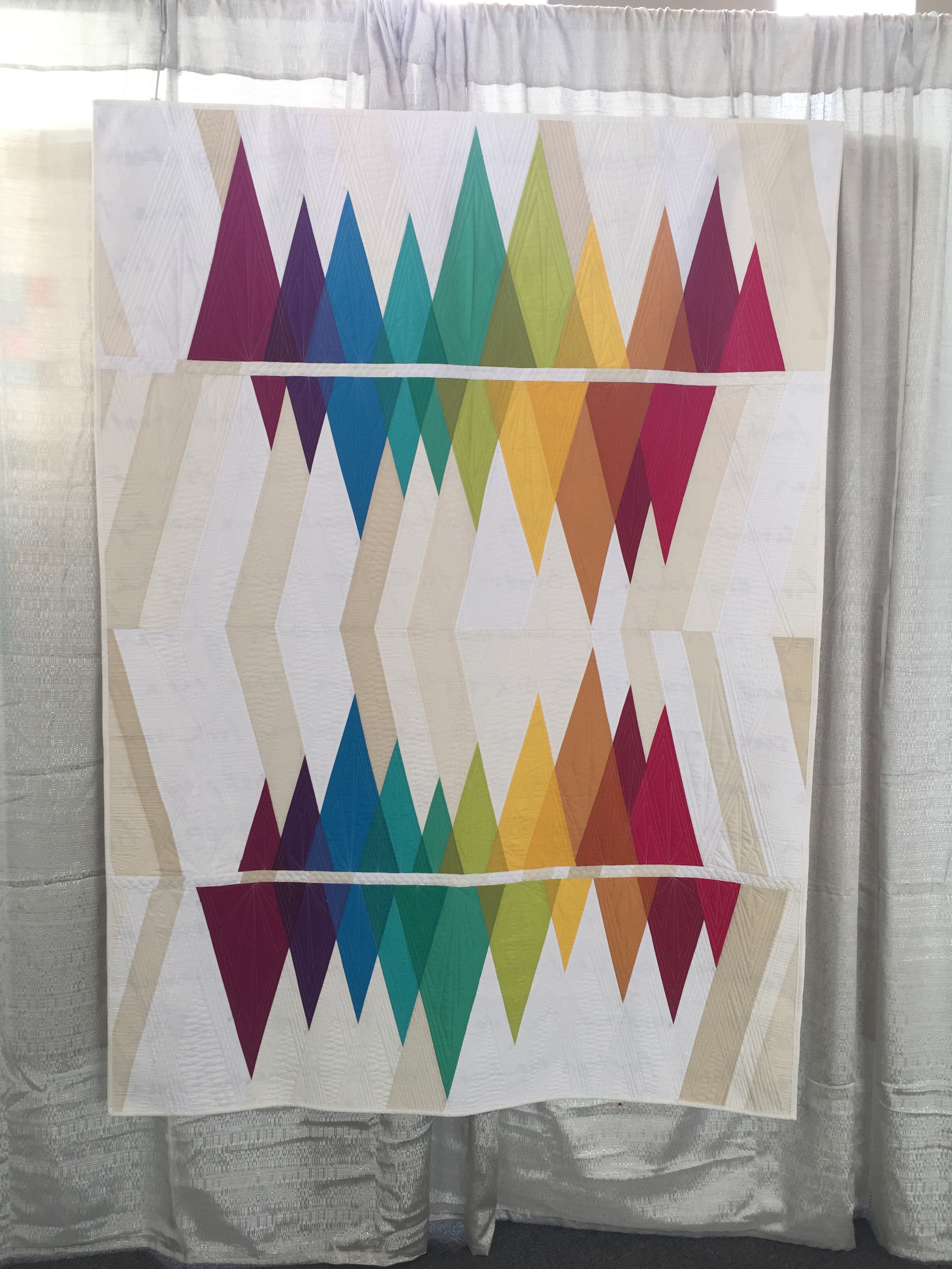 This is “Wavelength” by Rebecca Bryan (@bryanhousequilts) is really pretty in how the solids create overlapping blocks of color. I am working on something using overlapping solids for an art show at work so this made me happy as I think my idea will work!