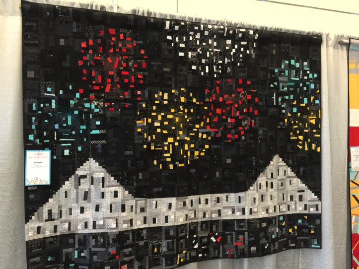 The Brisbane MQG made his quilt called “Riverfire.” The idea of fireworks is a lot of fun and a great use of the palette.