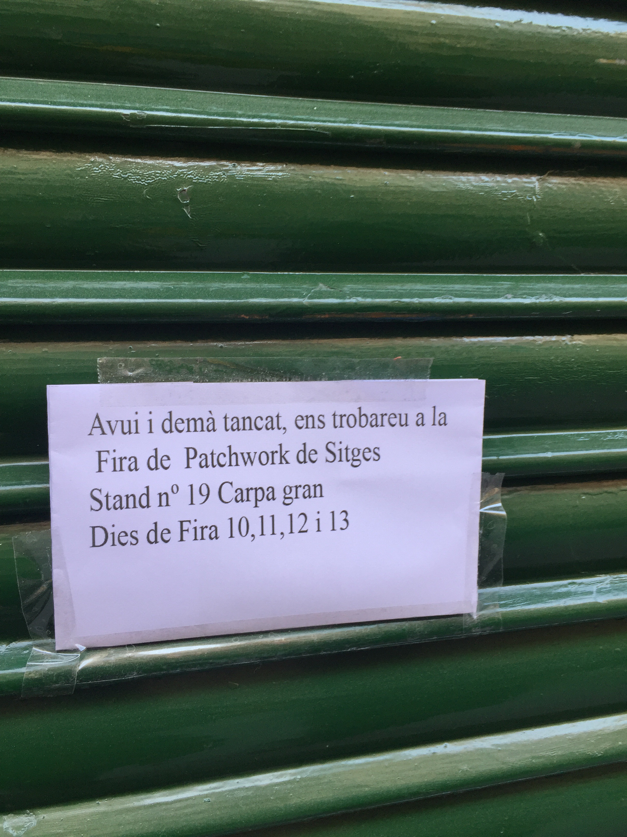 I am in Barcelona for a pitch this weekend and had some free time this afternoon after a meeting. Like any good quilter, I had googled local shops and went for a visit. When I arrived at this one, there was a sign that they were closed for Patchwork de Sitges. I will write about the vendors tomorrow, but for today, I definitely got the bear.