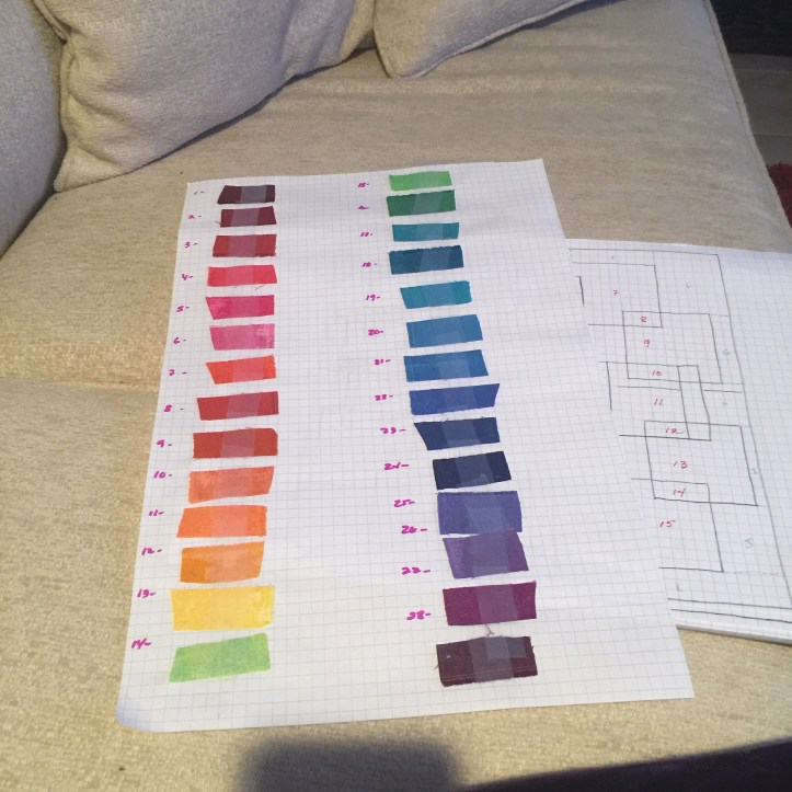 Here is my hand drawn pattern. This is more math than I ever expected to do for a single quilt.