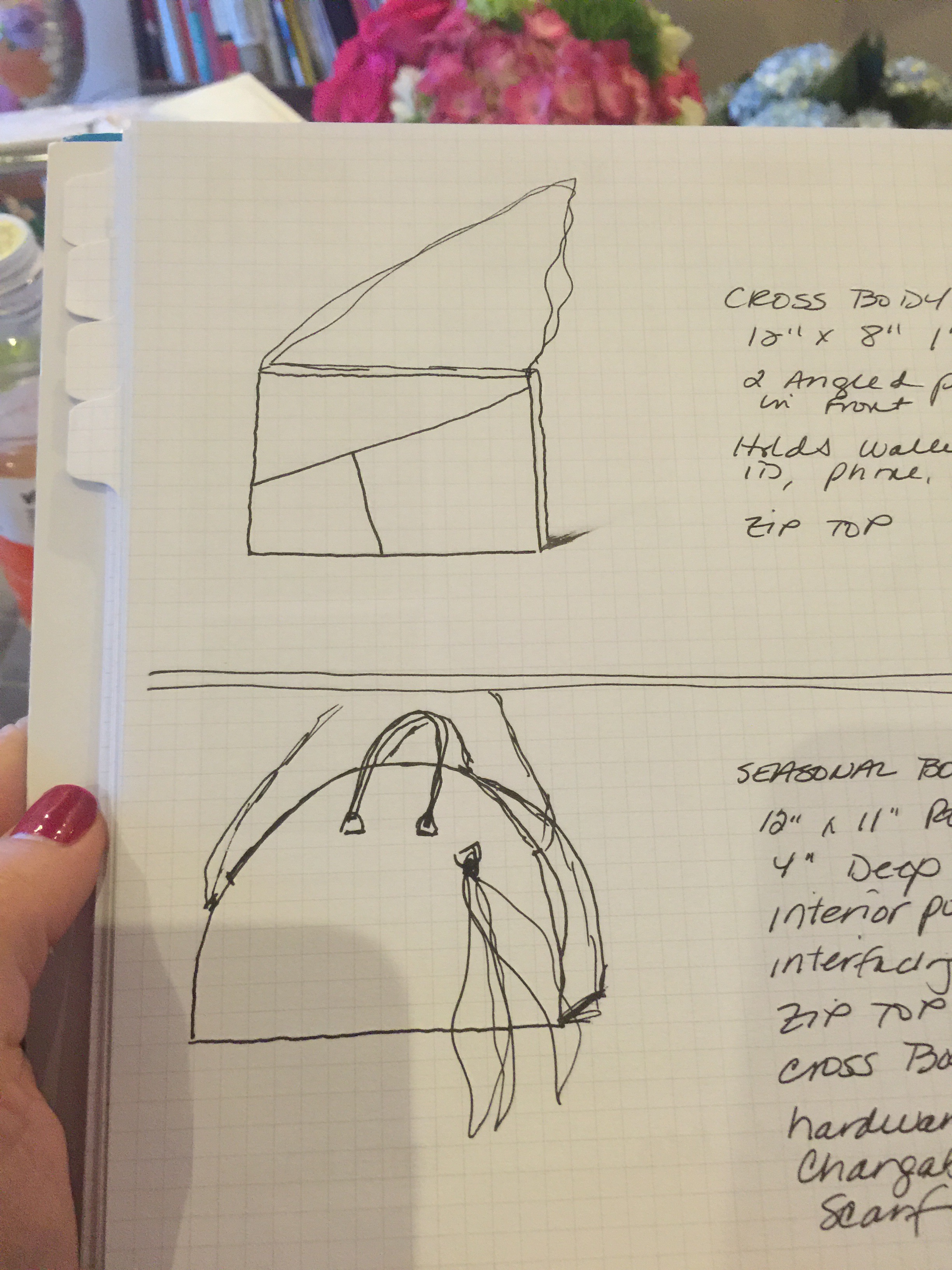 I also sketched a few bags and figured the pattern pieces and materials for the exterior and lining. I am excited about the top one which will be a cross body bag with two angled pockets on the front. I hope to make that in the next few weeks as I have a bunch of travel coming up and the bag will come in very handy.