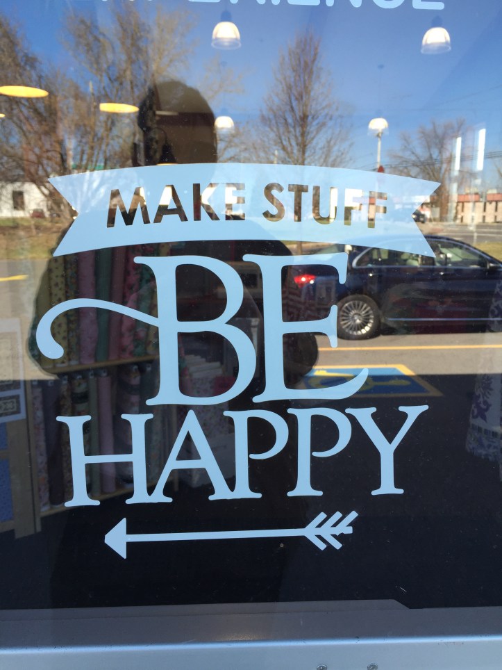 When you get to the door it becomes immediately apparent what a great shop this is. The door sign, “Make Stuff, Be Happy” just about sums it up. And this sentiment is carried out throughout the shop via the fabric, the decor and most notably the staff. They were all very friendly and helpful.