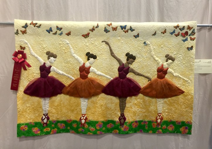This quilt is so pretty and if Maddie were still a young girl I would have wanted to use this technique to create something for her. “Shades of Misty” by Renee Flauranges-Valdez was inspired by Misty Copeland, the first African-American principal ballerina for the American Ballet Theatre. Beautiful quilt, and beautiful inspiration.