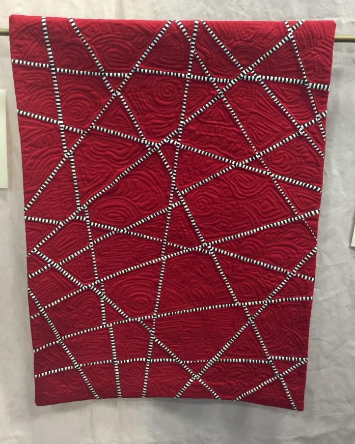 I really liked the simplicity of this small quilt, “Fractured VI” by Norma Schlager. The black and white is terrific, and I like random nature of the lines.