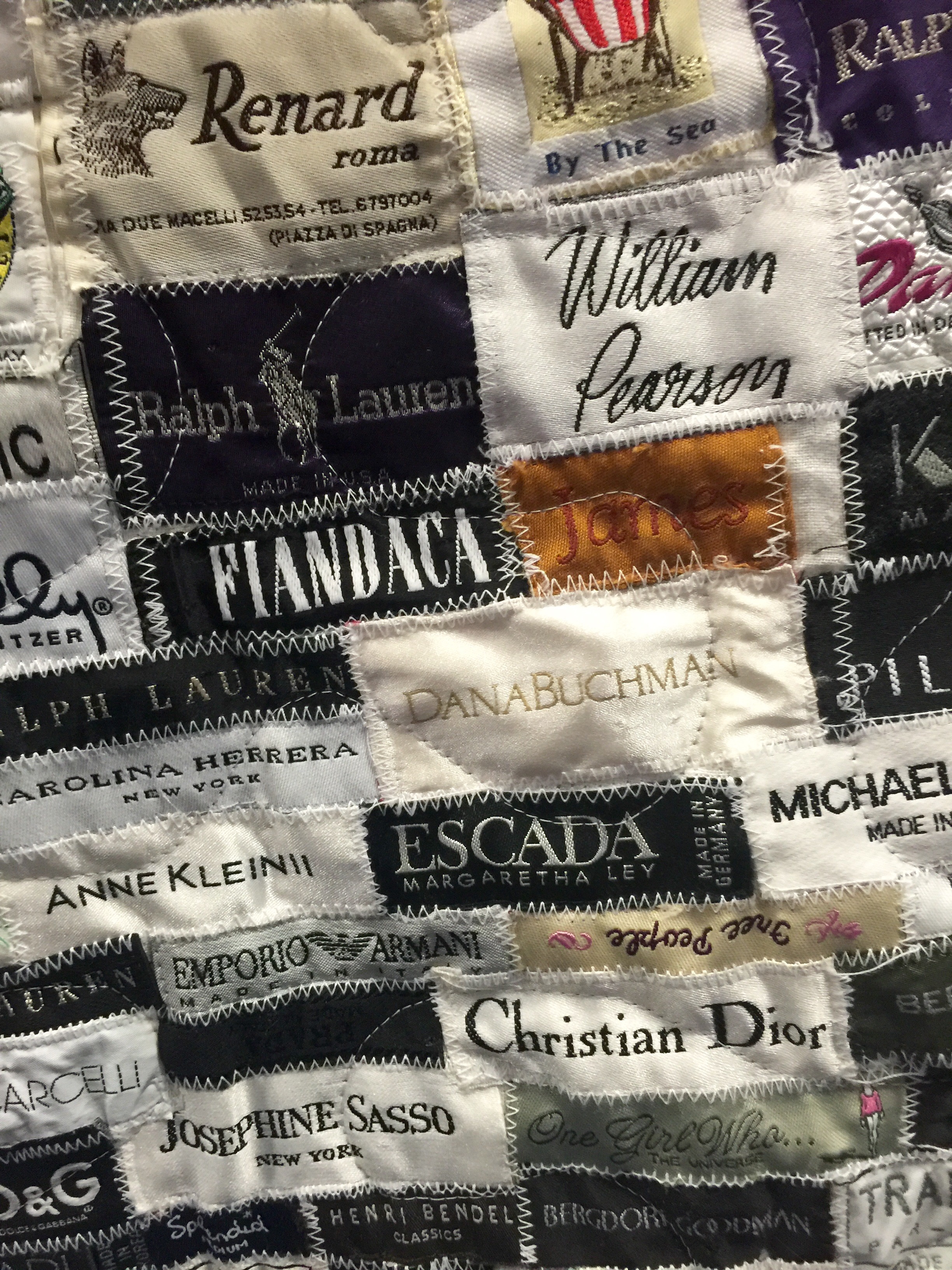 “Label Obsession” by Mern Palmer-Smith is made up of over 1,000 labels. The creator owns a consignment shop and doesn’t accept anything without a label. It is such a great idea and looked terrific. I loved the wonky nature of it.
