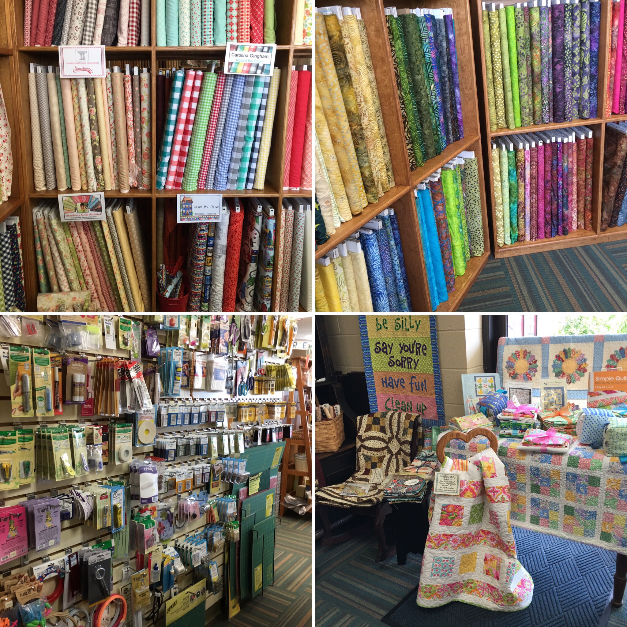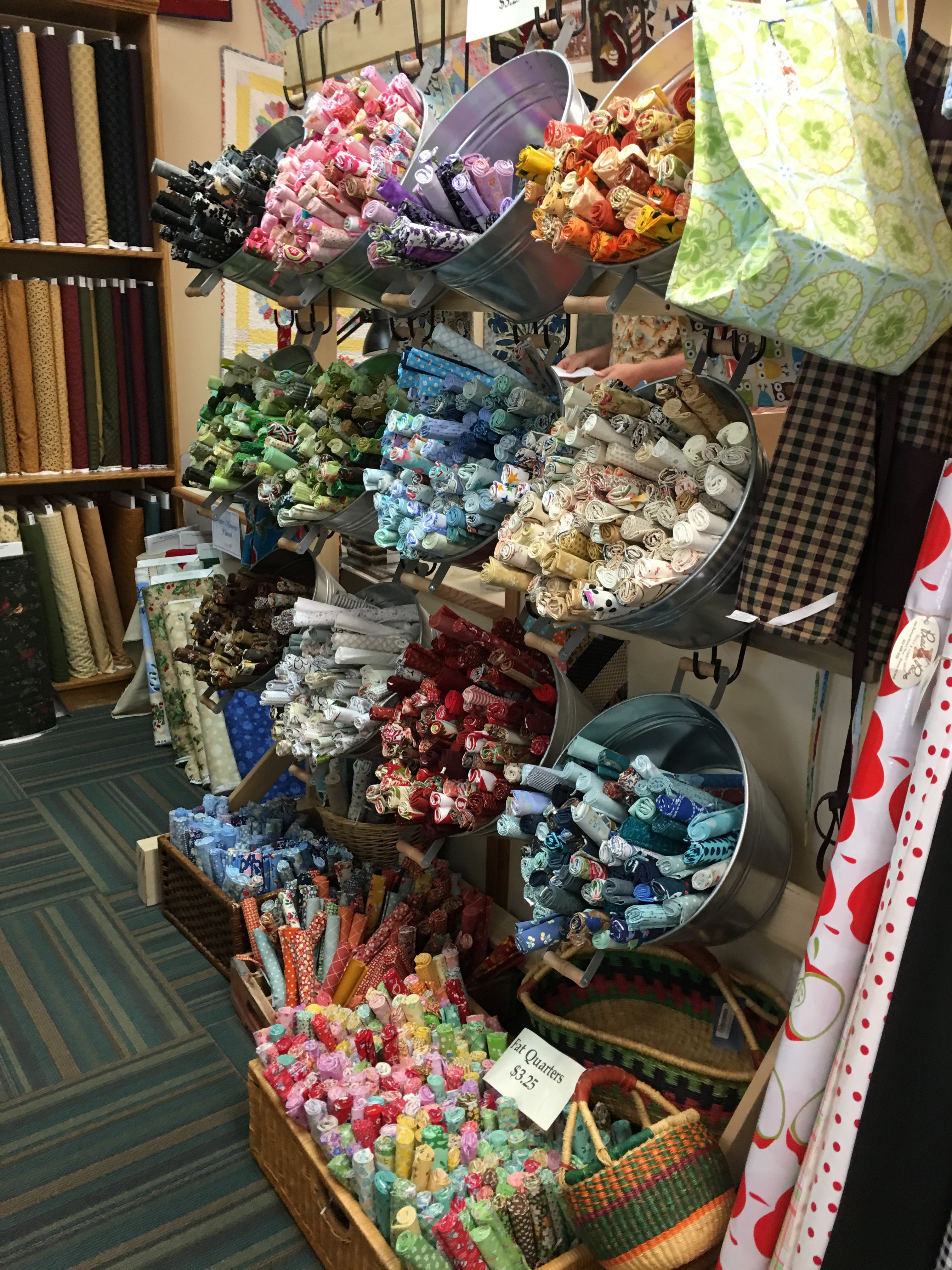 This shop has a great selection of fabric including batiks, traditional prints, newer collections, and novelty prints. I like how they used signs to call out collections that are displayed together. There aren’t a ton of modern prints, but if modern quilting is your thing, you certainly will find patterns and some fabric here. They also have terrific notions and so many examples throughout the shop. I really appreciate seeing things made as I find it very motivating.