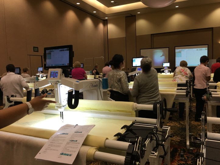 After lunch I went to a Pro-Stitcher Hands-on class, “Everything Edge to Edge” taught by Vicki Hoth and Marie Eldredge. I have never used the pro-stitcher software and I don’t know how I have gotten by without it. It isn’t quite as easy as setting it and forgetting it, but the quality is phenomenal. I really enjoyed both teachers – they kept if fun and I got so much from the class.