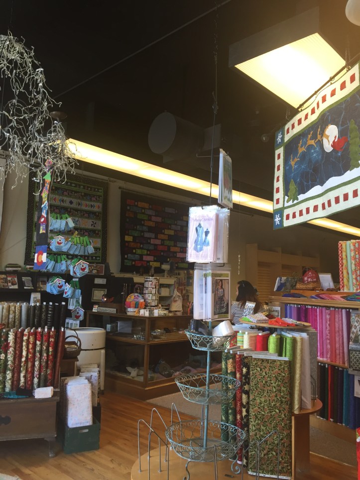 We are visiting my brother and his family here in Colorado Springs, and of course I had to see if there were any quilt shops in town. I struck gold finding Na-La’s Quilt Shoppe in nearby Fountain CO. The staff were preparing for the Shop Hop, which unfortunately for me, is next week after we return to NY.