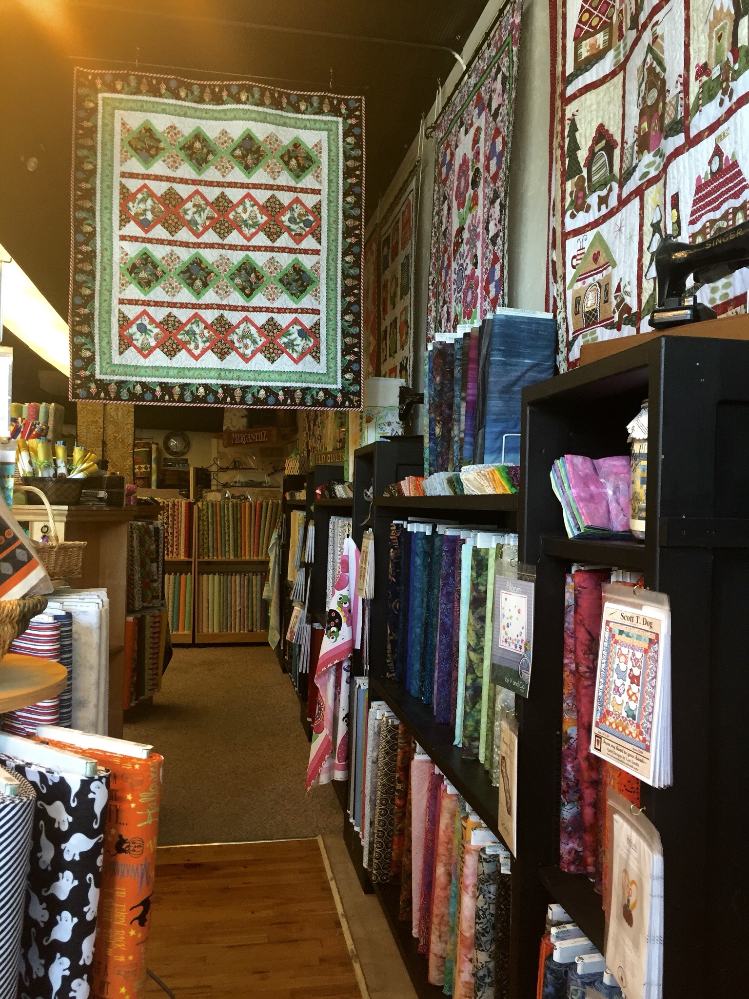 I highly recommend a visit to this shop, the staff were very friendly and welcoming but didn’t hover. I loved the variety as well, grouped by style. Lots of gorgeous batiks, landscape, reproduction, holiday and plenty of adorable child-theme fabrics.