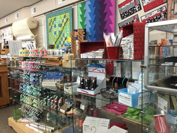 Beyond a great fabric selection, the shop is organized very well. Fat quarters are near the yardage, designers are grouped together and seasonal prints are easy to find. It doesn’t seem like a lot to ask, but you would be amazed by how often that isn’t the case. They also have dozens and dozens of books and patterns to select from, all the key notions, and a wide election of thread and longarm supplies.