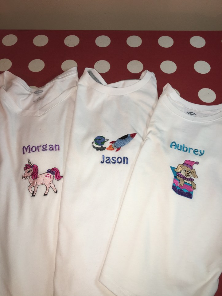 And Sunday after breakfast, we had manicures and then she got to work in the girl cave. I want kidding when I said everyone sews in my house!