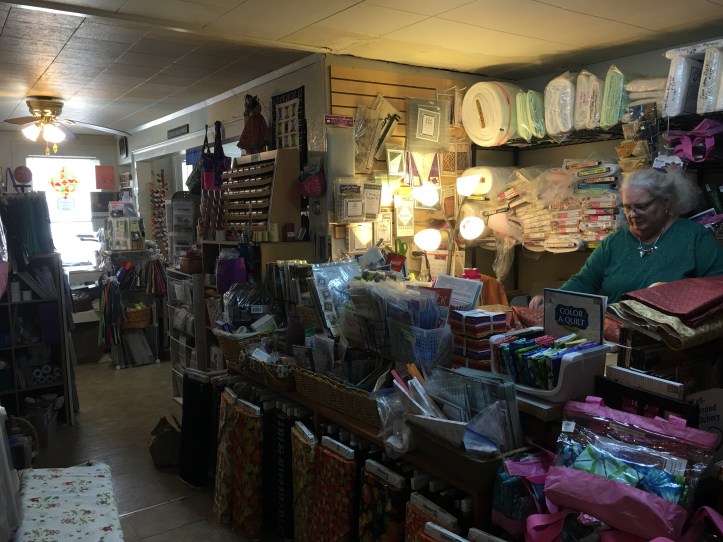 I don’t know how they do it but they have patterns, books, threads and other notions, rulers and cutting supplies, other tools, pre-cuts, wool, panels, kits and yardage. Honestly it is so crowded that I am surprised I liked it so much as this kind of clutter would paralyze me at home. But the woman working was so warm and interesting and the fabric selection so lovely that I went with it and really enjoyed it.