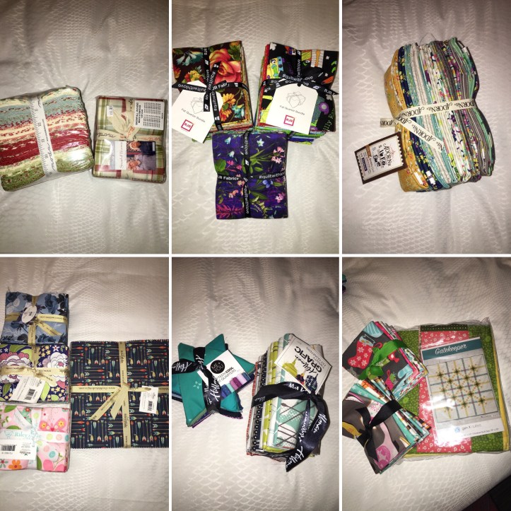 So what did I get? Lots of great fabrics, some that I love and some that aren’t me but I know customers that will love them. I wish I hadnt got so many FQ bundles as there were all sorts of pre-cuts, but now I know for next time!