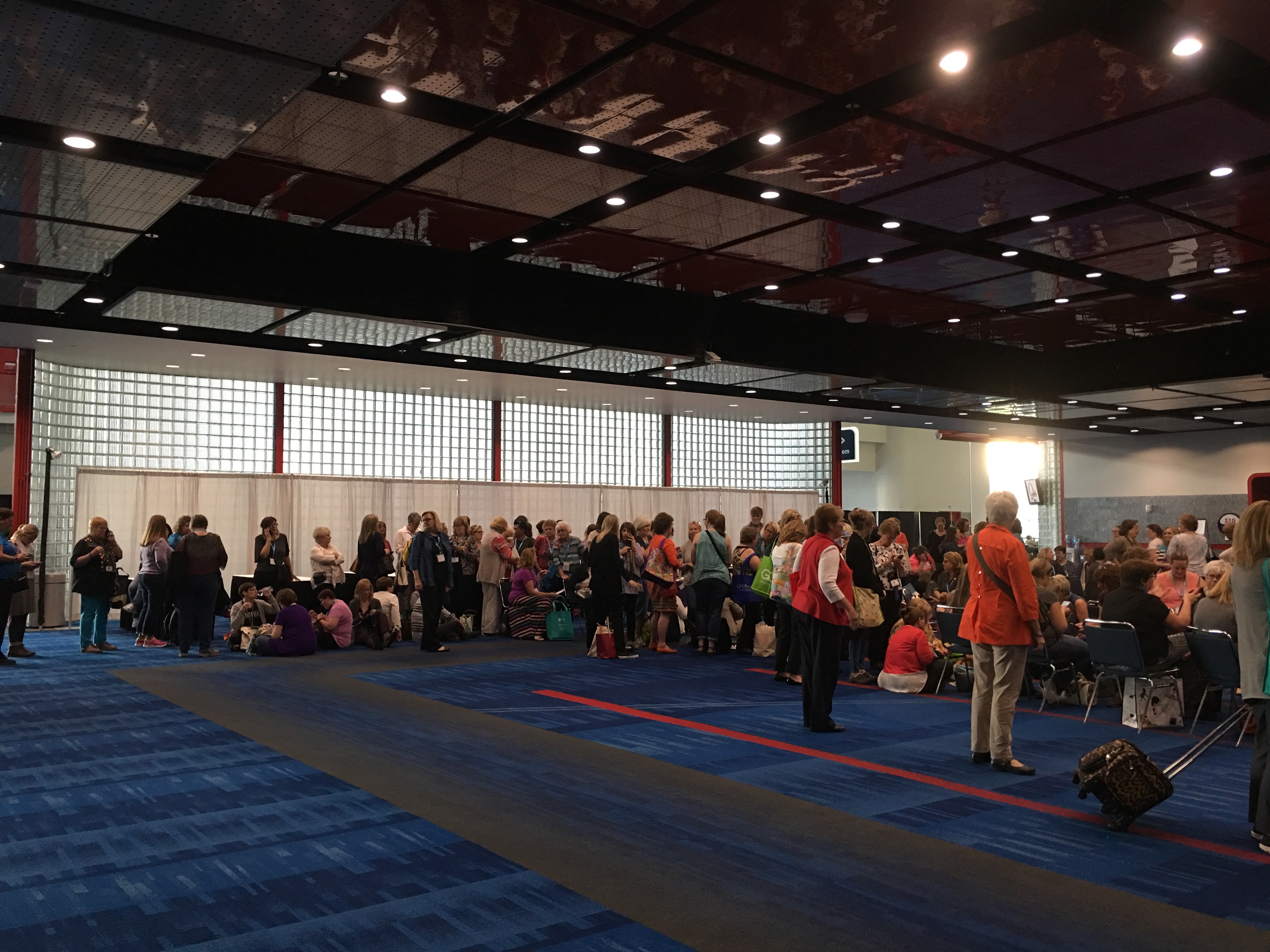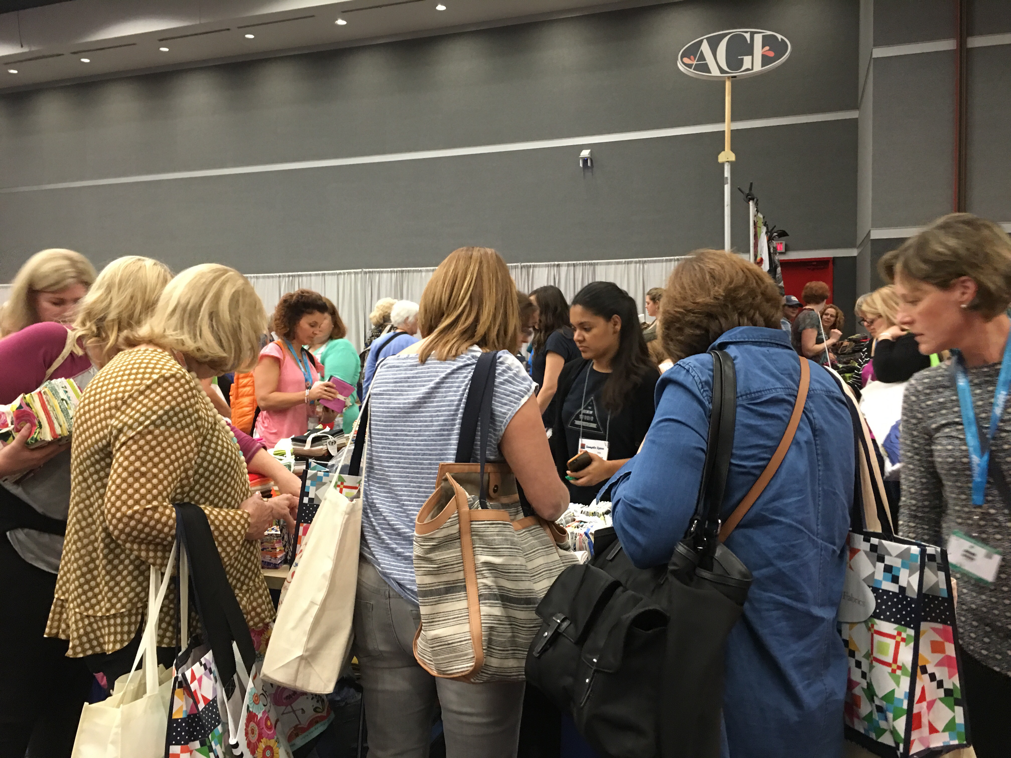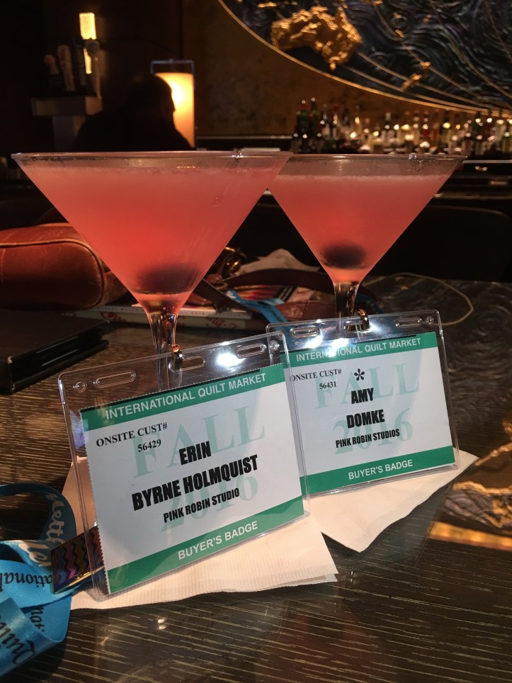 I have always wanted to go to Quilt Market and now that I am organized around my quilting, I was able to. Amy also wanted to go, so we hatched a plan and off we went. As is often the case, this is a quick trip – get into town, do something that night, binge on the quilts and vendors the next day and fly out early the following. This trip, the “something” on night one was Quilt Market Sample Spree.