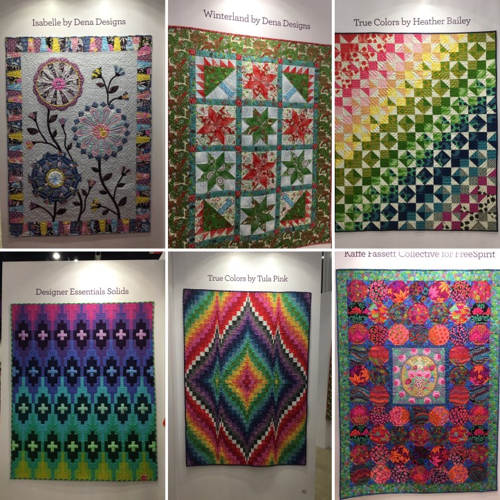 Hands down, best display of quilts in the booth goes to Free Spirit Fabrics. All the manufacturers had lots of quilts on display. But this was like walking through a high end gallery and each quilt was more stunning than the previous. Beyond the fact that Free Spirit manufactures some of my favorite designers, they just did an awesome job.