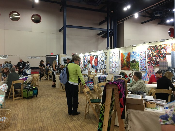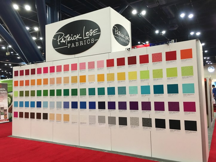 Whoa! Patrick Lose’s color wall is stunning in its simplicity. It caught my eye from a distance away and called my name. I ended up getting some fabric that I am excited about. I am committed to Kona Solids, but these colors rock.