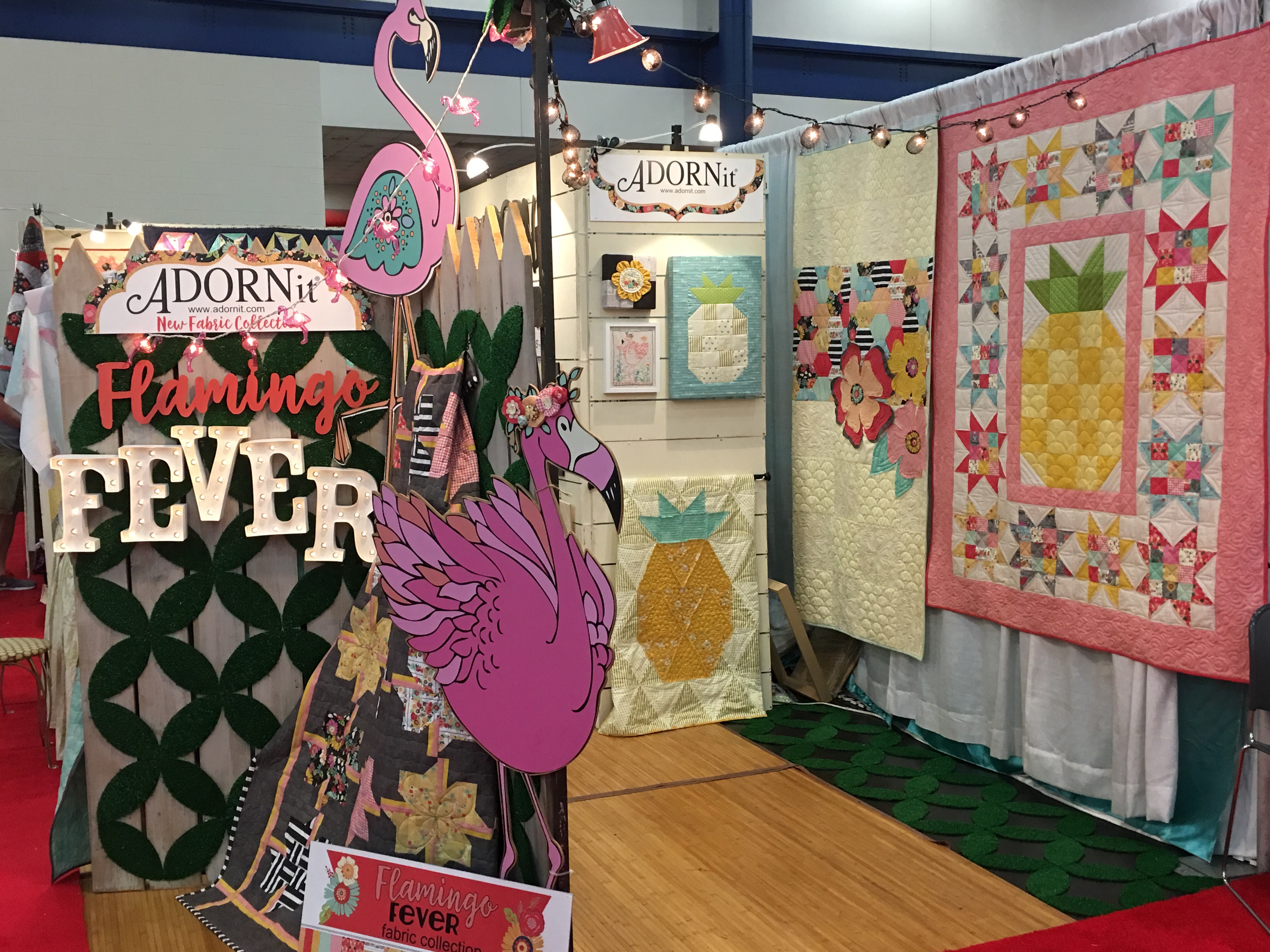 Adorn It is a smaller, but up and coming fabric manufacturer. I believe it was started by a mom and daughter duo and I really spark to their fun and whimsical designs. Their booth was well done and I enjoyed meeting them again after my first encounter at QuiltCon. Their new pelican line is really cute. Are Pelicans the new owls?