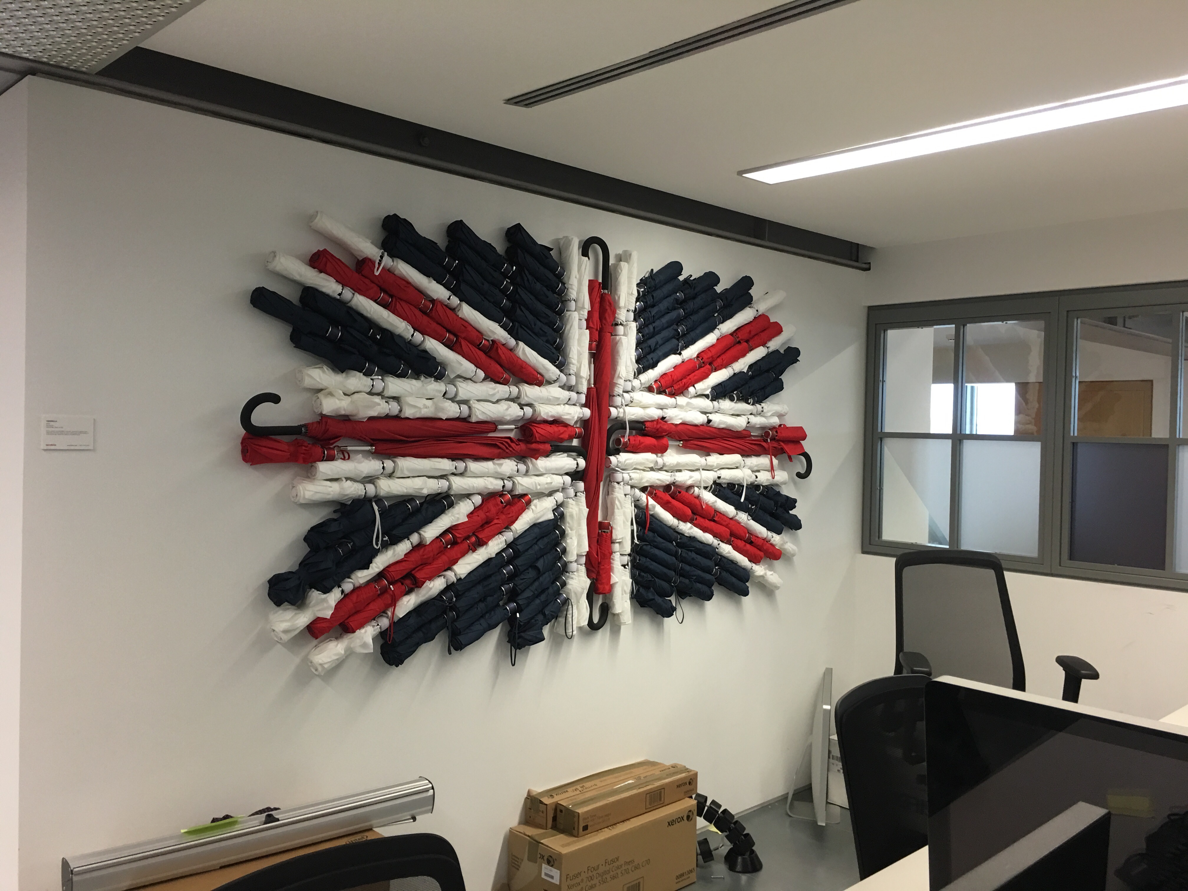 I love this composition of the Union Jack made of umbrellas. Very clever installation by colleagues at a sister agency.