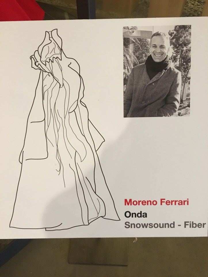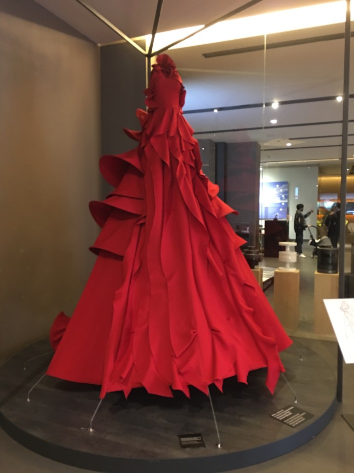 Milan is known for its fashion vibe and my hotel was in the fashion district. I wanted to go for a long walk, but client drinks bled into dinner with the head of a sister agency. So I was especially delighted by this fantastical garmet on display outside the nHow hotel.