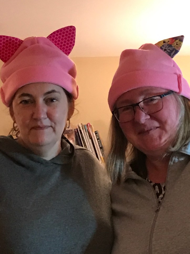 Patty decided to amp up our involvement by joining the Pussy Hat Project. The idea is that women will wear pink pussy hats to make our voices heard visually and to provide a way for women who can’t march to still get involved.