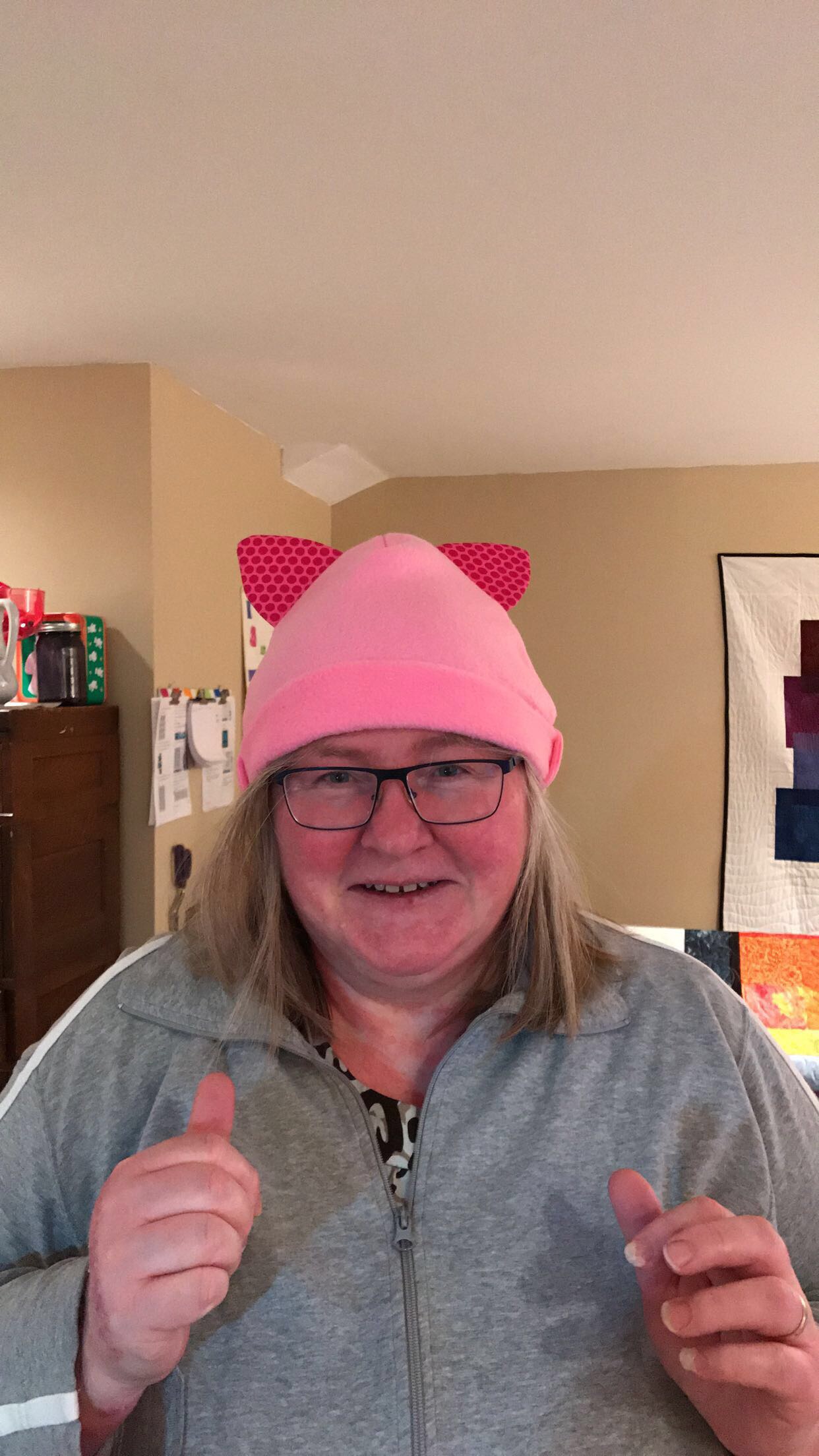 If you need a pussy hat to make sure your voice is heard, let us know. Same goes for a pattern as I can send our homemade pattern if needed. Thanks Patty for jumping in to do this and letting me help!!! I will wear my dark pink with polka dot ears hat with pride and determination on Saturday!