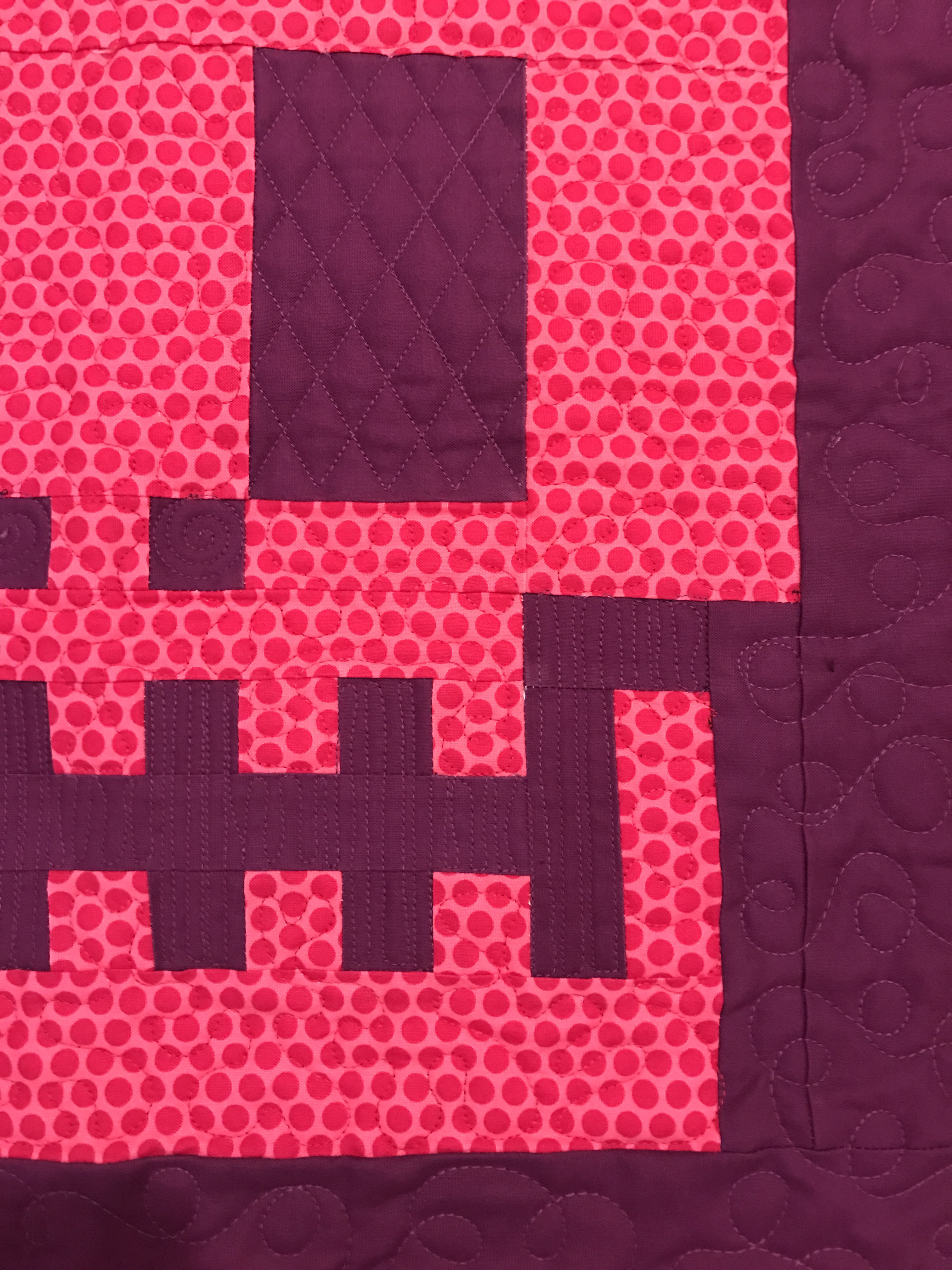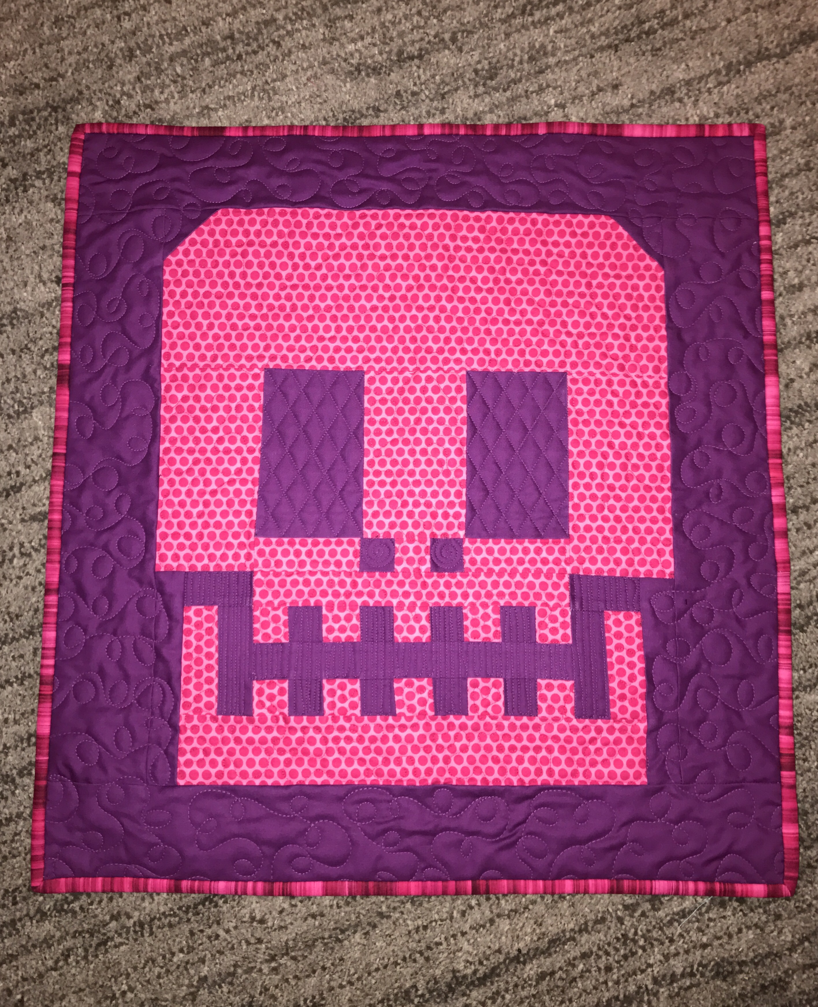 I custom quilted it with stippling for the skull, loops for the border, a grid for the eyes and some up and down for the jaw. It was really fun.