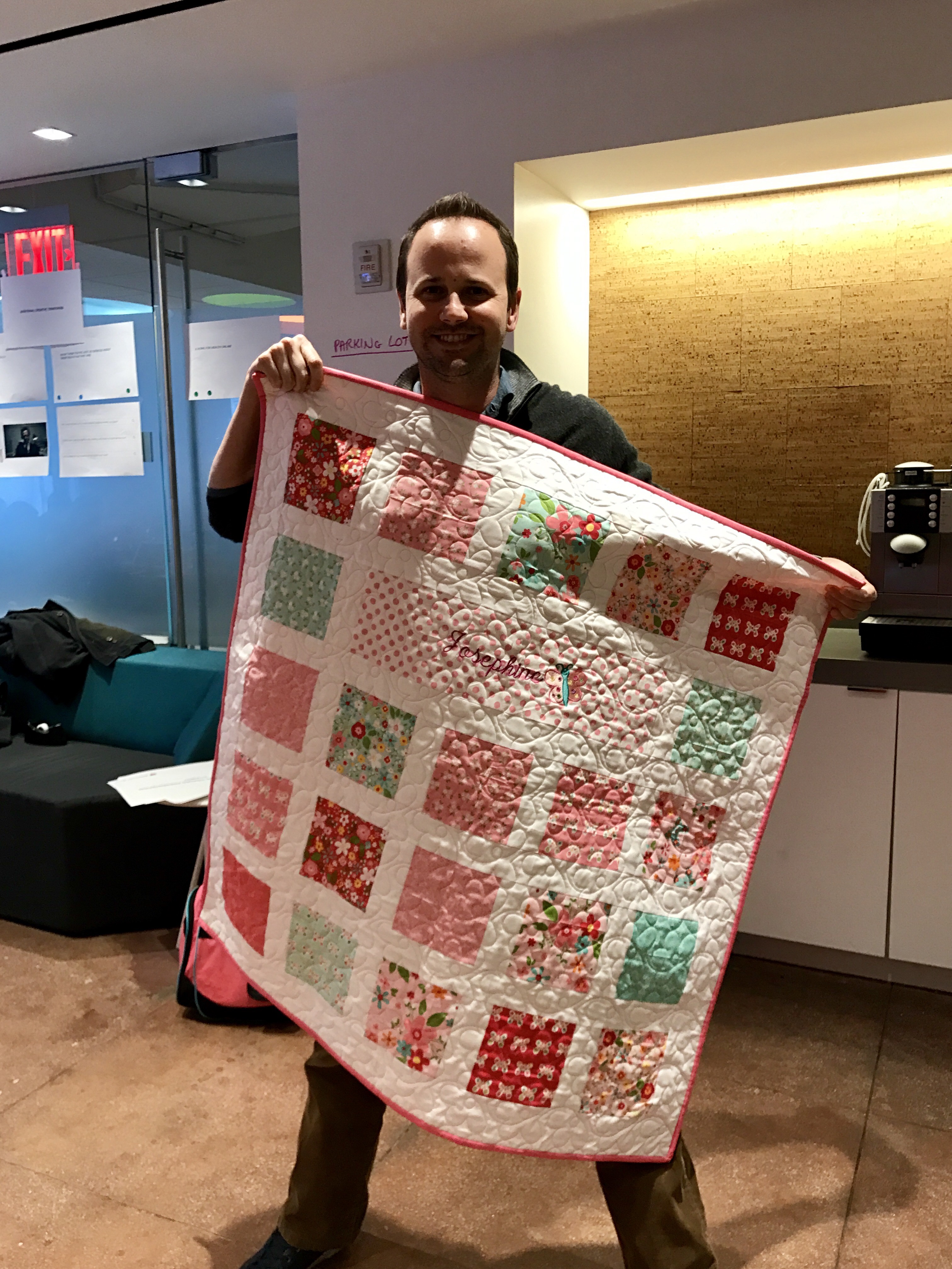 And now Hutch can bring this quilt home to his wife and daughter. I home baby Josephine enjoys it in the best of health.