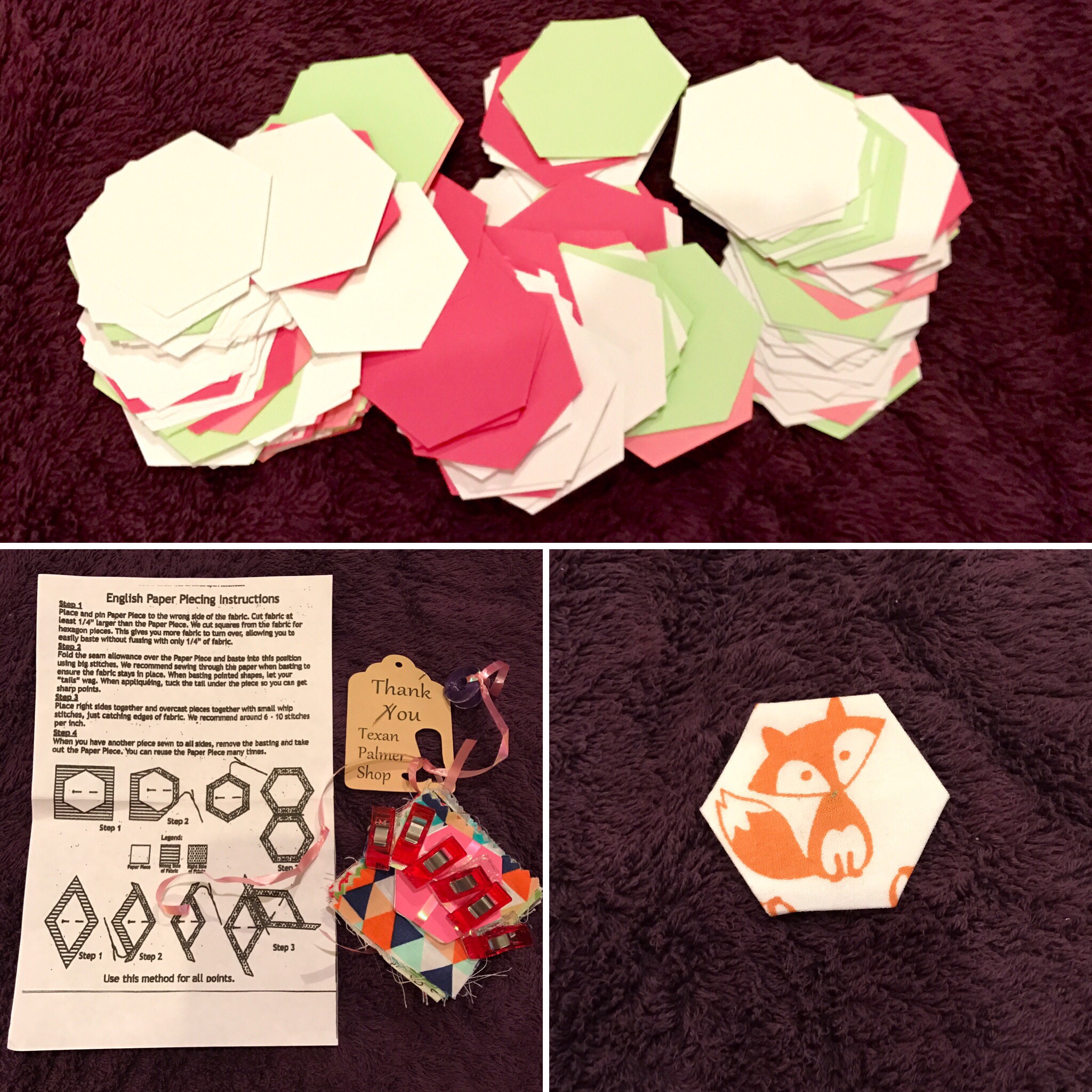 An instragram quilter who has an Etsy shop (search TexanPalmer) sells hexie starter kits for a really reasonable price. I got excited and grabbed the starter kit and a bunch of other shapes. I have been working so much lately and have a ton of travel coming up. It has gotten very difficult to find the 15 minutes of time per day for personal creativity that I seek. I thought this would be a good way to recommit to that. It will be easy to pack a few hexies for the train, or the plane, or before returning to my laptop and then ever ending stream of emails after dinner.