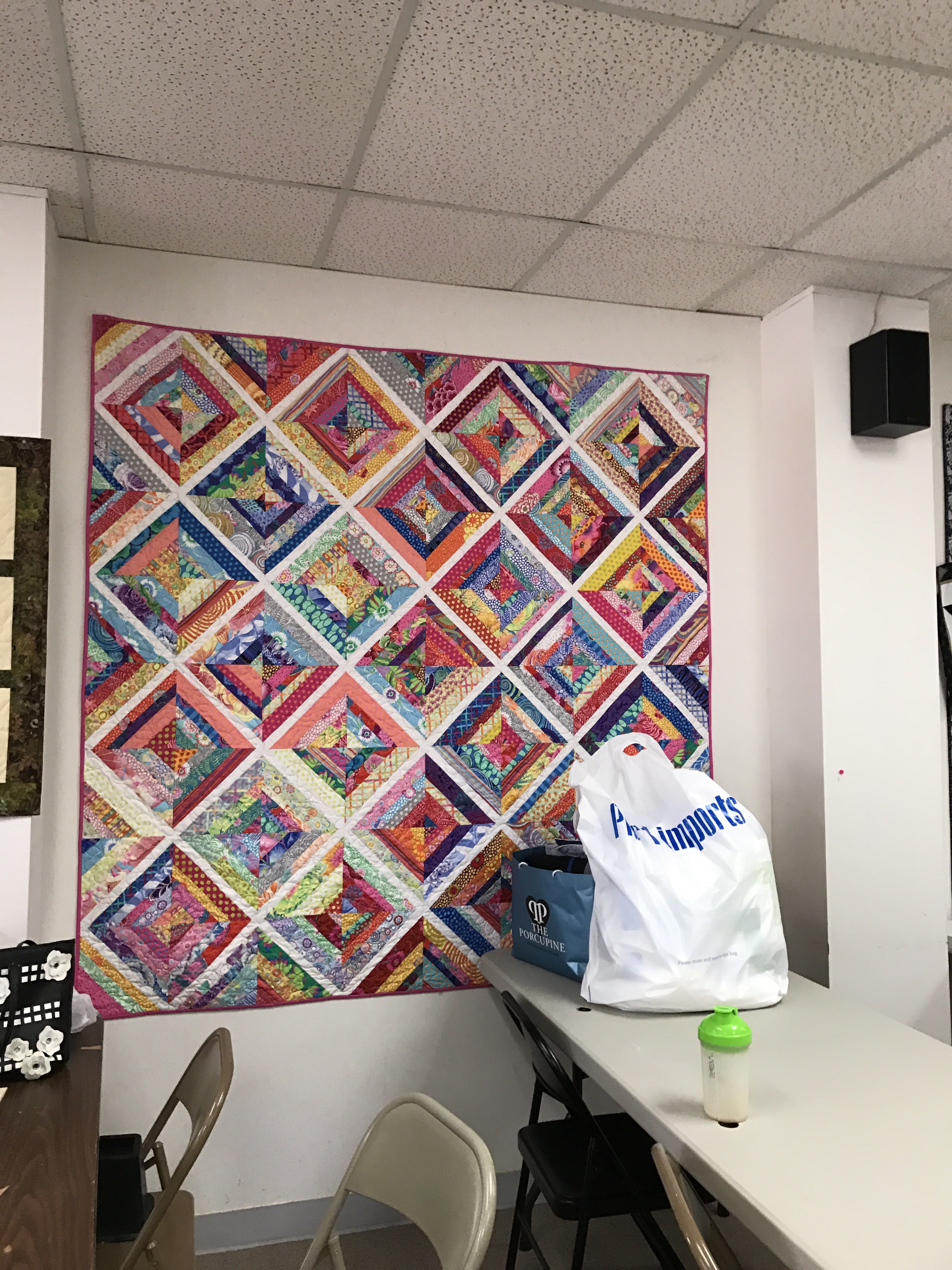 I thought this quilt in the classroom was awesome. I have done a few string quilts and thought the blending in this one gave it a nice painterly approach, which I really liked.